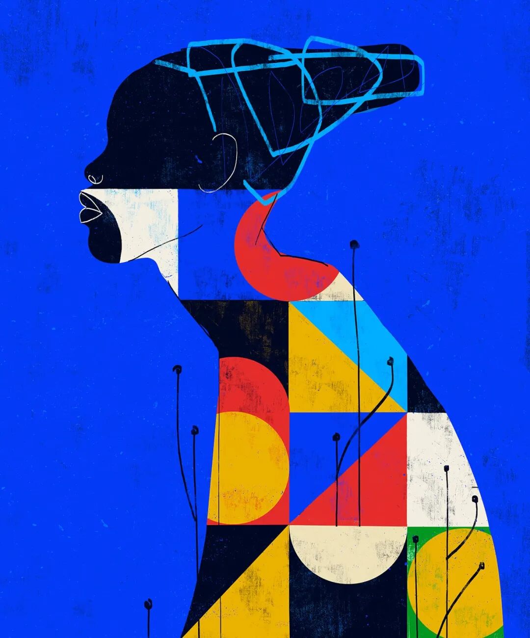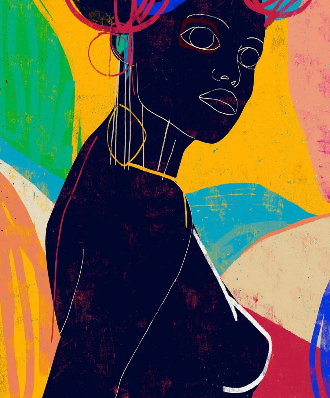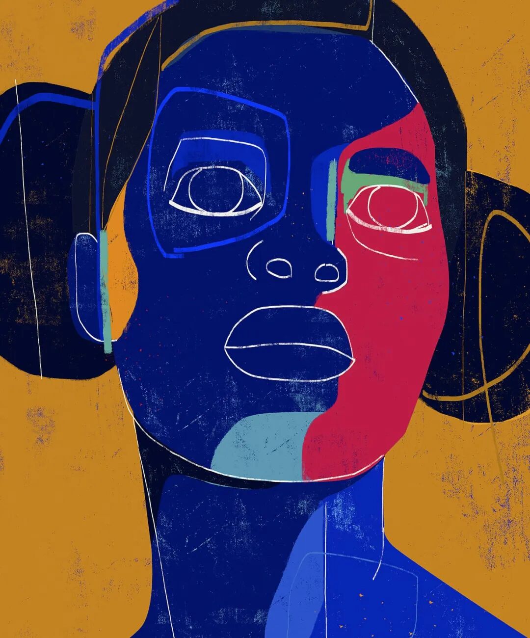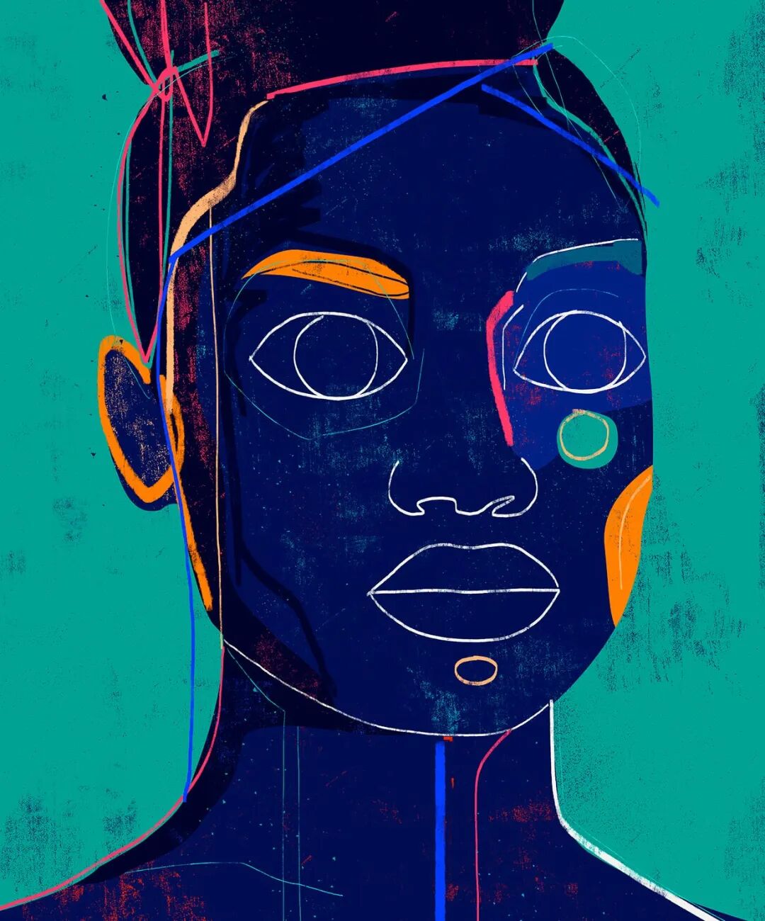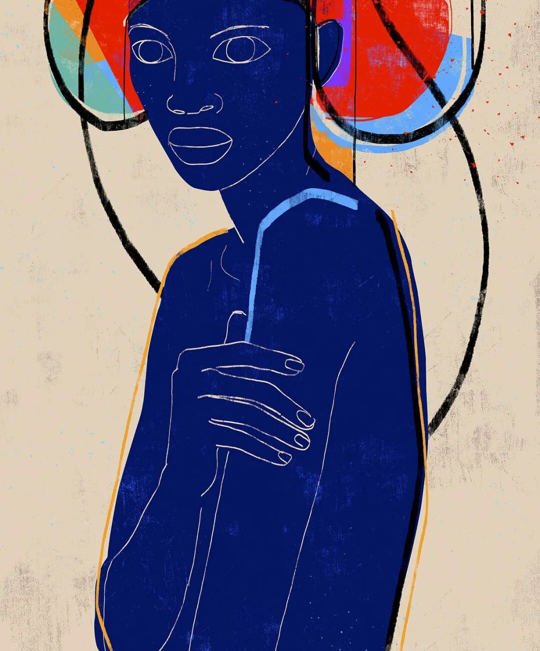 Luciano Cian,巴西艺术家,他的肖像画用稀疏的、极简的线条和有质感的形状来描绘。他利用明亮的色调和最小的标记来定义脸颊或肩膀的轮廓。