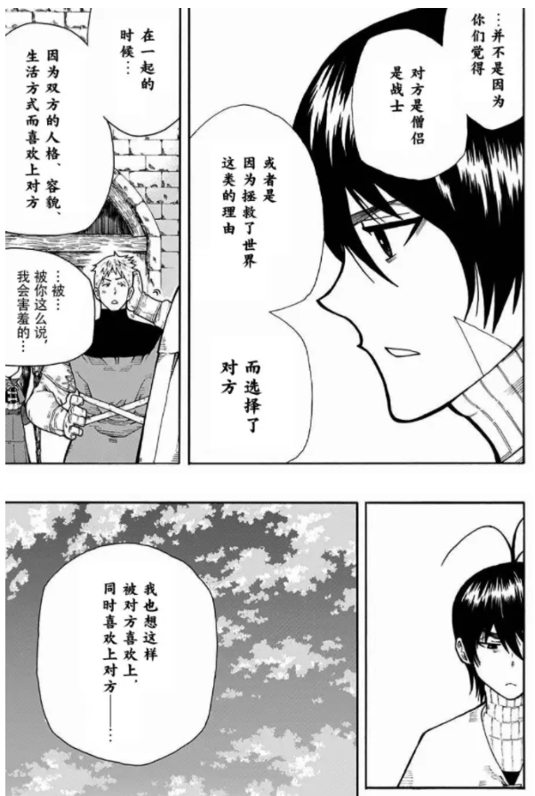 唯有得知战士僧侣结婚的消息时,表情才有了变化,他首次产生了希望与某人相爱缔结婚姻的想法。