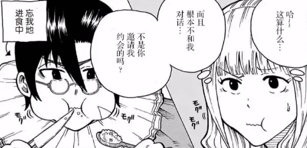 吃饭时,他完全自顾自地吃东西,好像忘了有妹子在旁边——