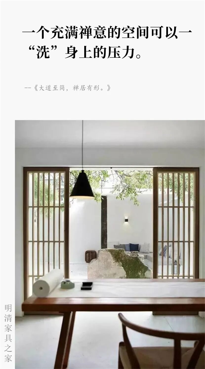 作品集2023-10-02 大道至简,禅居有形。 禅意意味着平衡,和谐与放松。尽管禅意家居并没有一个完整的标准,但是它多少与极简的艺术相关,朴素,纯净。 一个充满禅意的空间可以一”洗”身上的压力,达到宁神静气的效果。 在如今快节奏高强度的城市生活,让人们都渴望回到家中。迎接自己的是一个宁静而放松的港湾,因此远离喧嚣、简朴平和的禅意家居空间,便是很好的选择。 禅意空间 宁静却不失优雅, 以简朴、随意的特点, 给人很强的吸引力, 为空间营造一个宁静、安逸的港湾。 禅意空间注重物体的简素之美, 在室内装饰中都偏爱木材, 认为木材是有生命的。 以求保持原木的素色和清晰的纹理, 这样可以体现一种禅宗的简素精神。 天然材料呈现出的是材料的简素本色, 磨砂的质地、随意的形态, 无不体现出自然的本色之美, 洋溢出一种天真、淡泊、洒脱的景象。 利用简素的物体所营造的室内空间, 让人的心境平和与安祥,超然物外。 在这纯自然、高简素的色调中, 展现出的是一种朴素、简约之美, 这种精练的视觉美感, 正是禅意空间的体现。 图片:网络,版权归原作者所有 本文来自微信公众号“明清家具之家”(ID:tieliwang)。大作社经授权转载,该文观点仅代表作者本人,大作社平台仅提供信息存储空间服务。 TAGS: 室内禅意空间 相关文章Kleoniki Andr…这是大王Day.281获奖作品《2020最佳图书…精选头像|搞怪来袭!安东尼奥·布埃诺 作品配色清新梦幻的场景插画,充…美国Jennifer Mc…【小鹏设计】设计小改/动力…【首发】地点空间丨打破空间…谢商家不坑之恩!只骗有钱人…