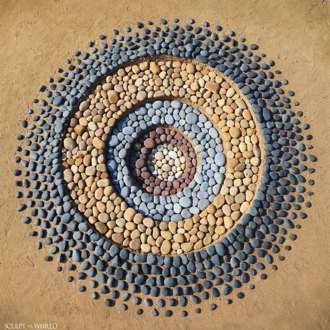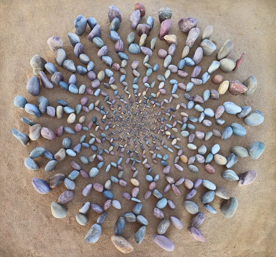 /大地艺术家再出新作,普通石头拼出精美花纹,解压又治愈
