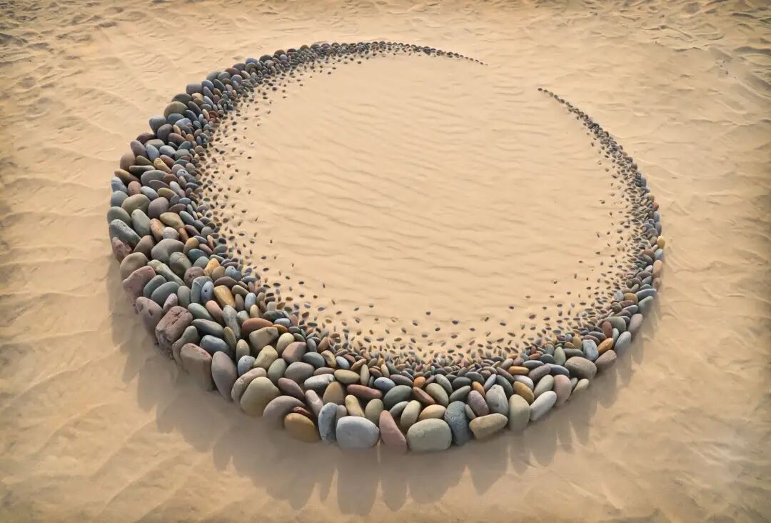 不同的大地艺术家,也有不同的创作习惯,有的艺术家擅长用树叶拼凑大地艺术,有的艺术家擅长在海滩上绘画,不过,最受人们喜爱的当属用石头制作的大地艺术。