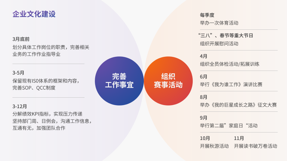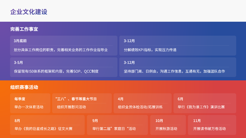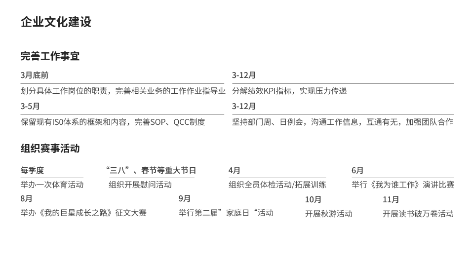 看起来只是简单的事情罗列,其实讲了两件事情:完善工业事宜和组织赛事活动。