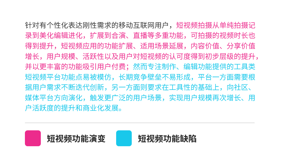 还是一样,先理解下文案,这次文案看起来比上次多,其实只讲了两段内容,短视频功能的演变和短视频功能创作的缺陷。