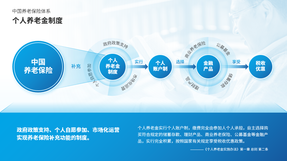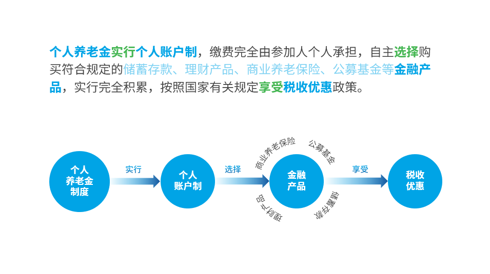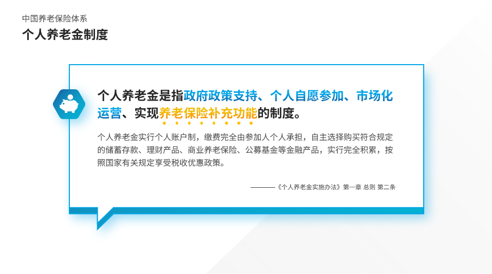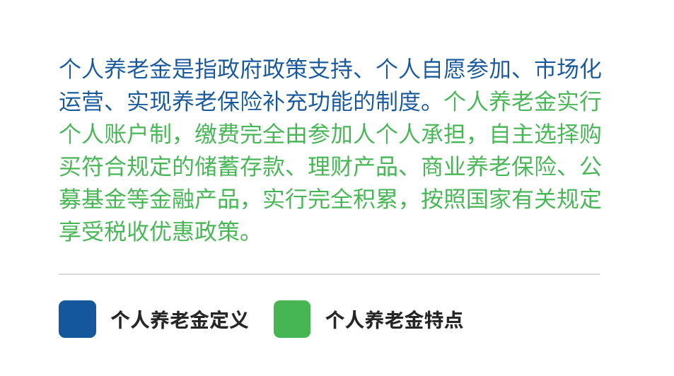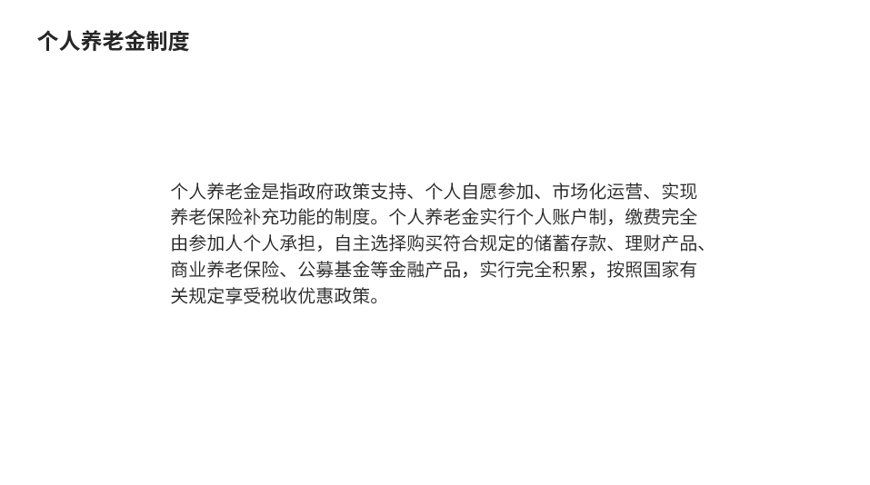 然后看动词和名词,就知道个人养老金是养老保险的补充,可以用放射的梯形体现逻辑关系。