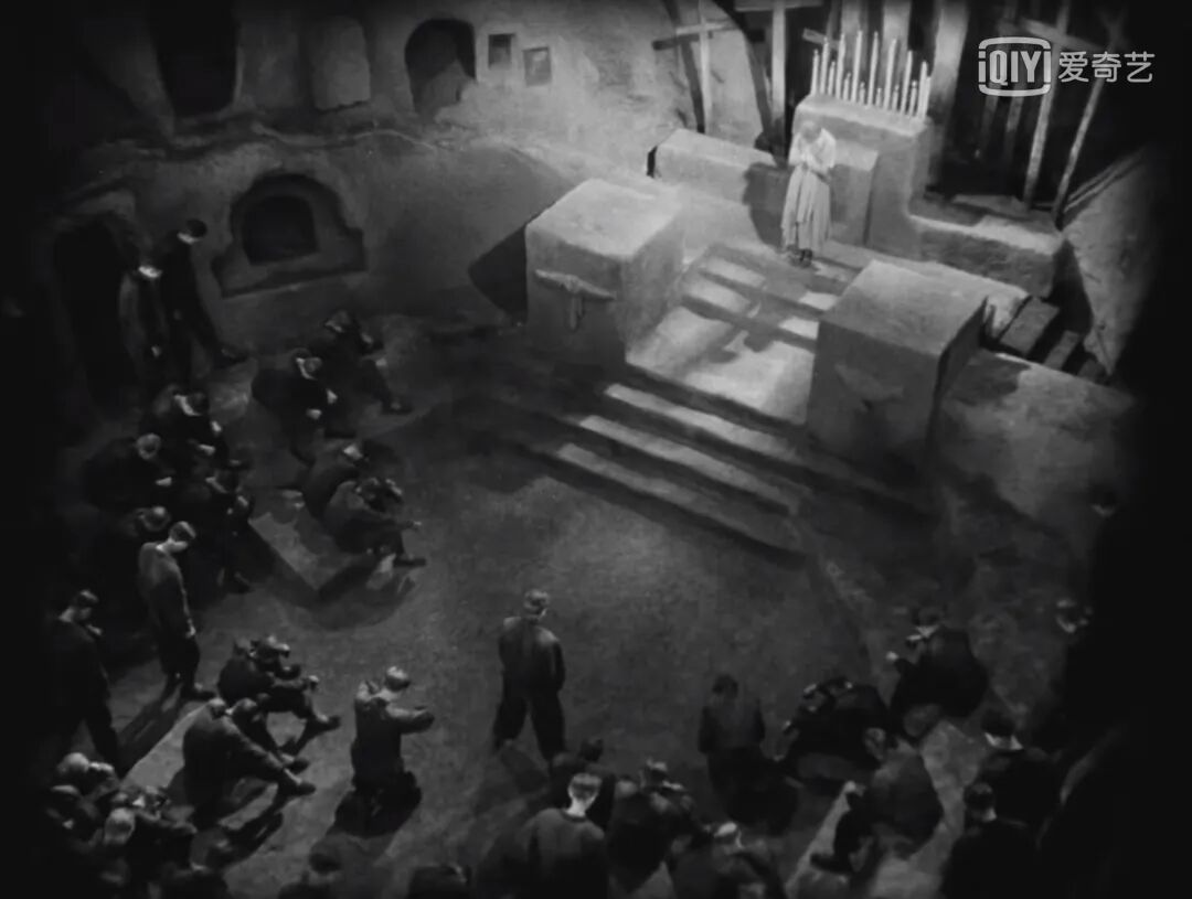 我们可以看到,当机器人玛丽亚出现在工人面前时,她明显处于一个较高的位置,这也促使工人们将她奉为神明,追随她一同摧毁地下城。