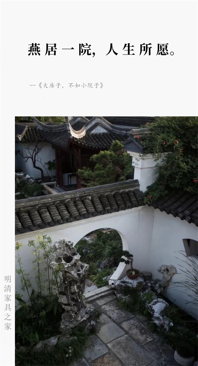 小院,大概是人们心中,最柔软的地方,它从来都不单纯是一种建筑形式,它深入每个人的心灵和记忆中,成为中国人的生活艺术和精神领地。有方小院,便可「别开清净之天,莫嫌地癖;不作繁华之梦,所爱日长」。外面一片喧嚣热闹,院里一应清明悦目。