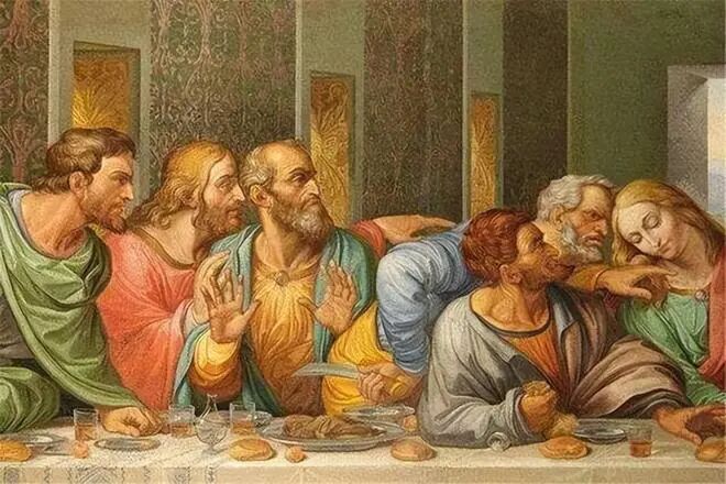 耶稣的话语就像是一块砸入平静湖面的石头,打破了晚餐的气氛,激起了门徒们的惊讶与气愤。