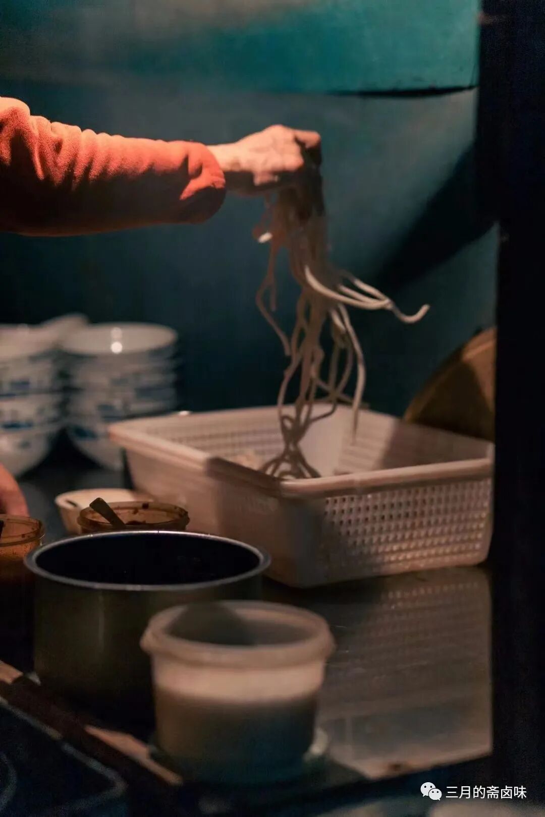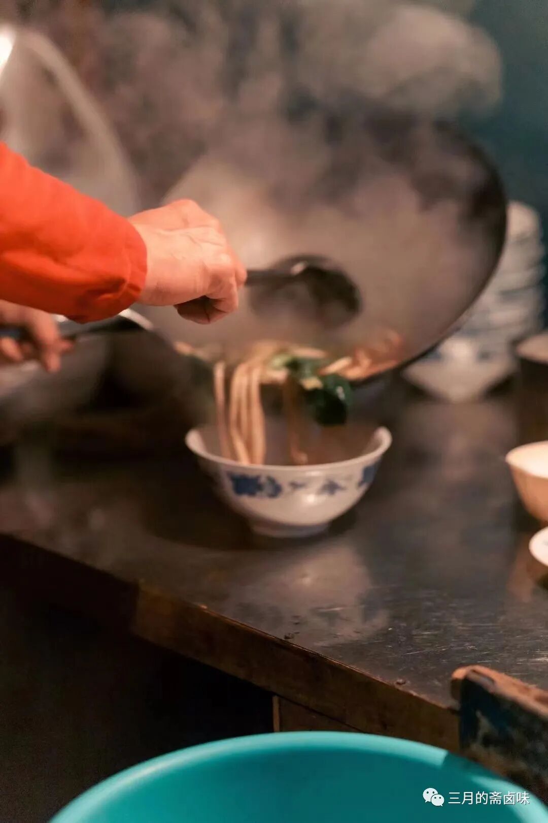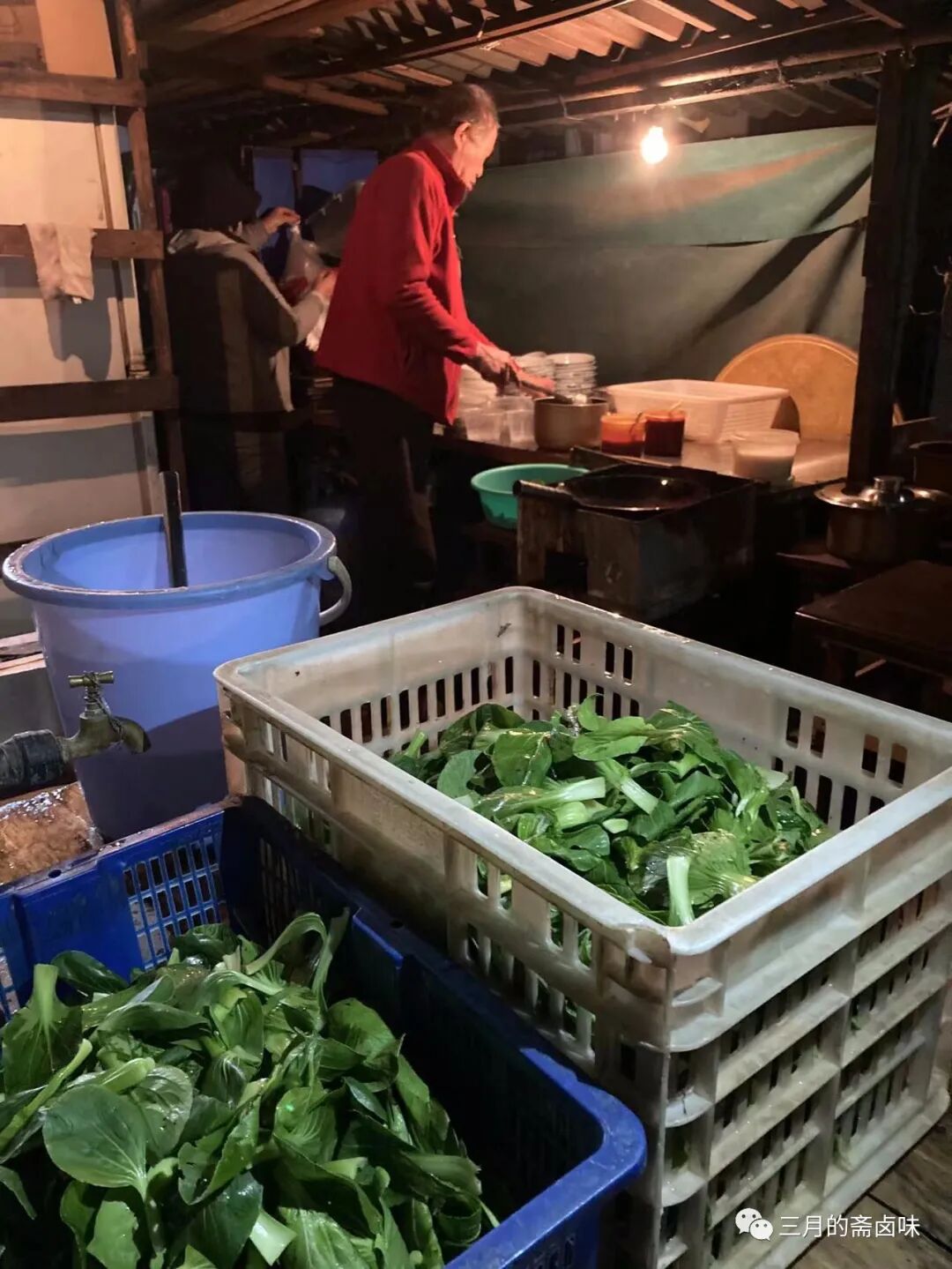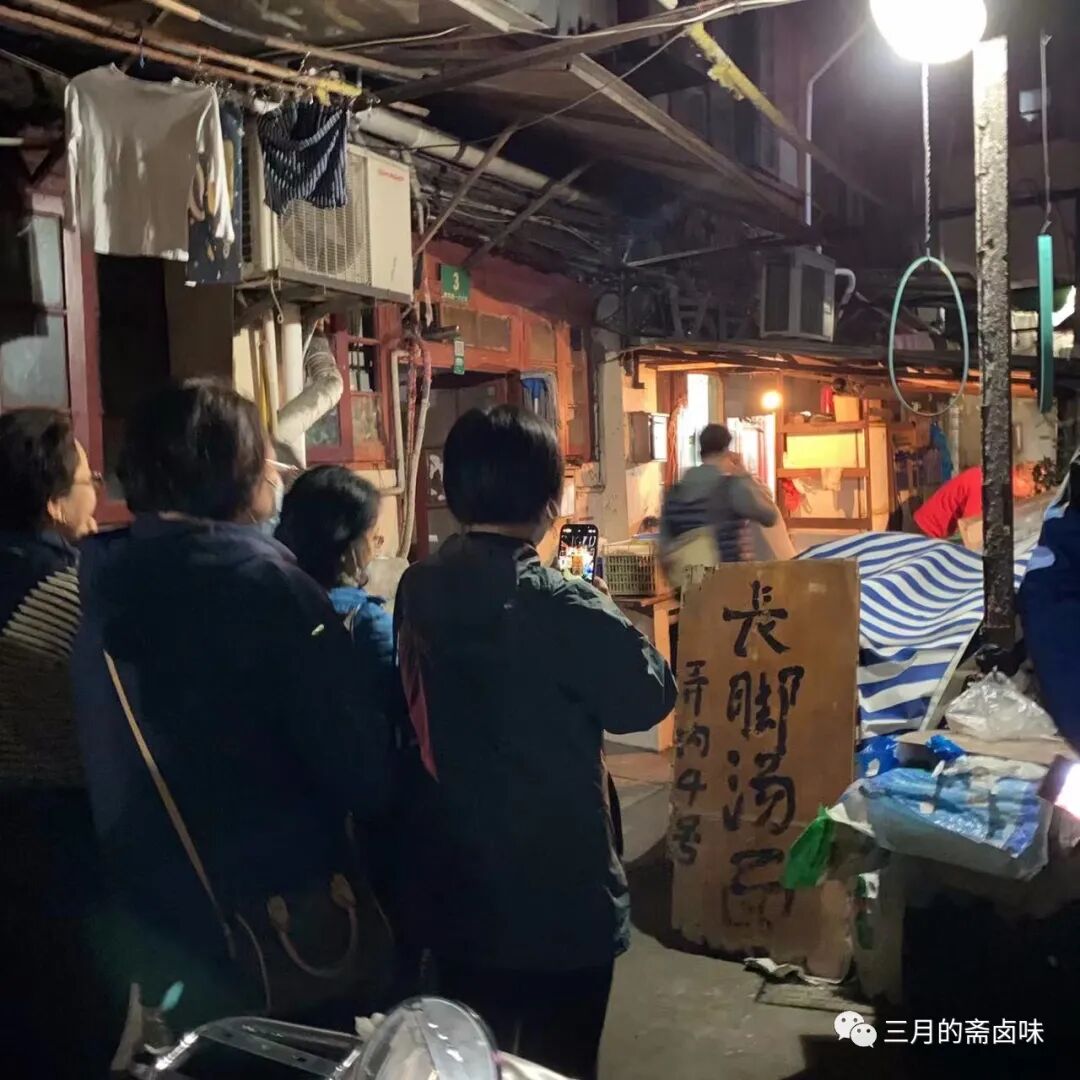 若不是上次下午来过此地,深夜来还真不好找这个地方。穿过狭小的弄堂,一眼就看到脚很长的长脚爷叔和老板娘已经开始准备起来了,几碗外卖100元的汤面订单已经收到了。