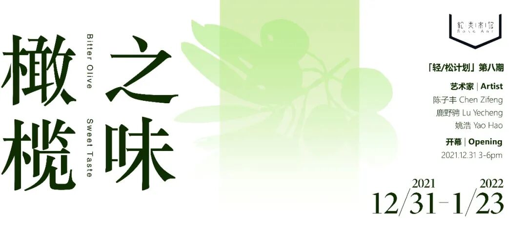 松美术馆主展馆已于2022年1月17日起休馆,东区2号馆展览“橄榄之味”将于1月23日闭展,还没来看展的小伙伴要抓紧最后几天时间啦。