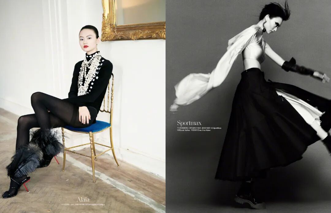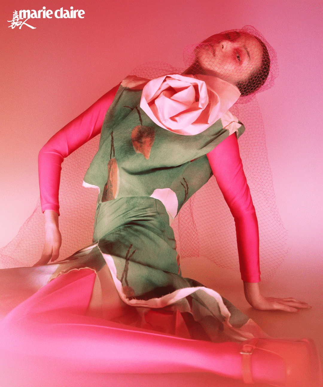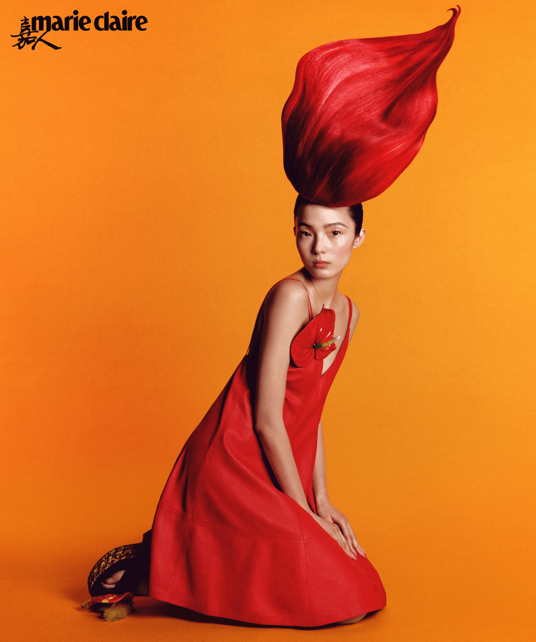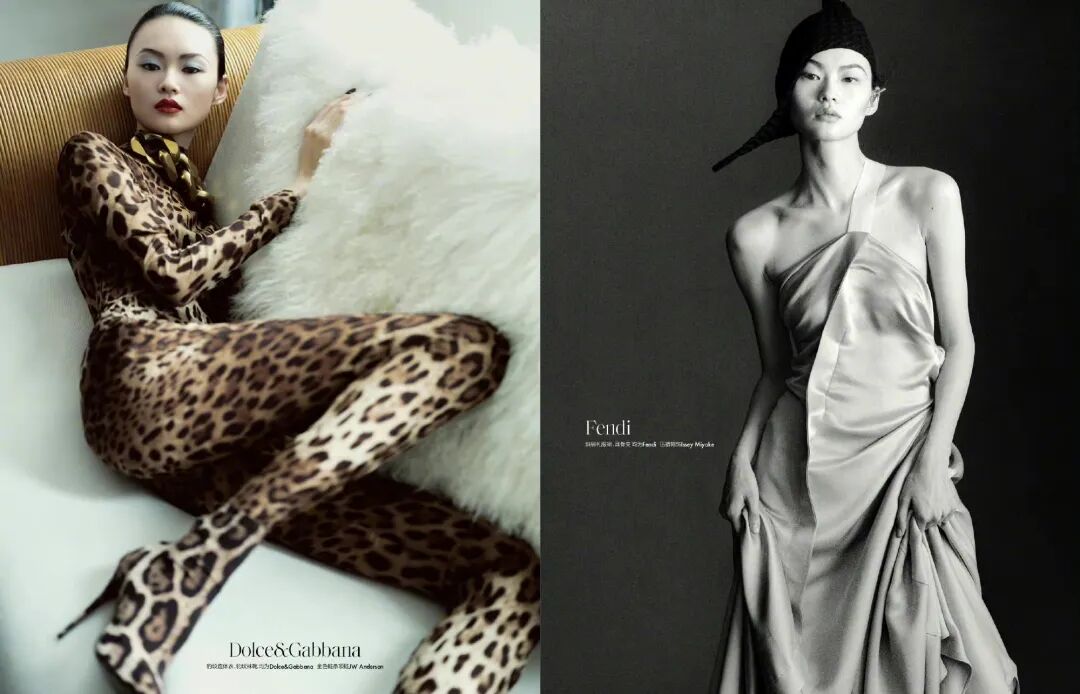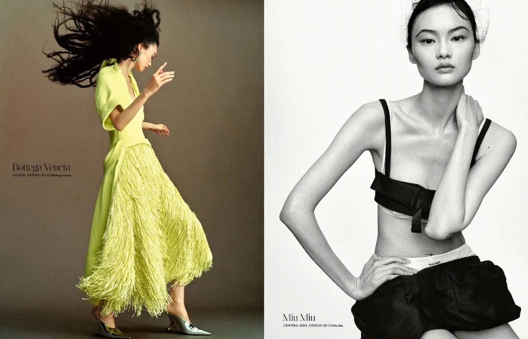 超模雎晓雯身着 LOEWE 红白掌花连衣裙登上《嘉人》三月开季刊双封面,不得不夸一下,嘉人的时装大片水平总是那么突出!