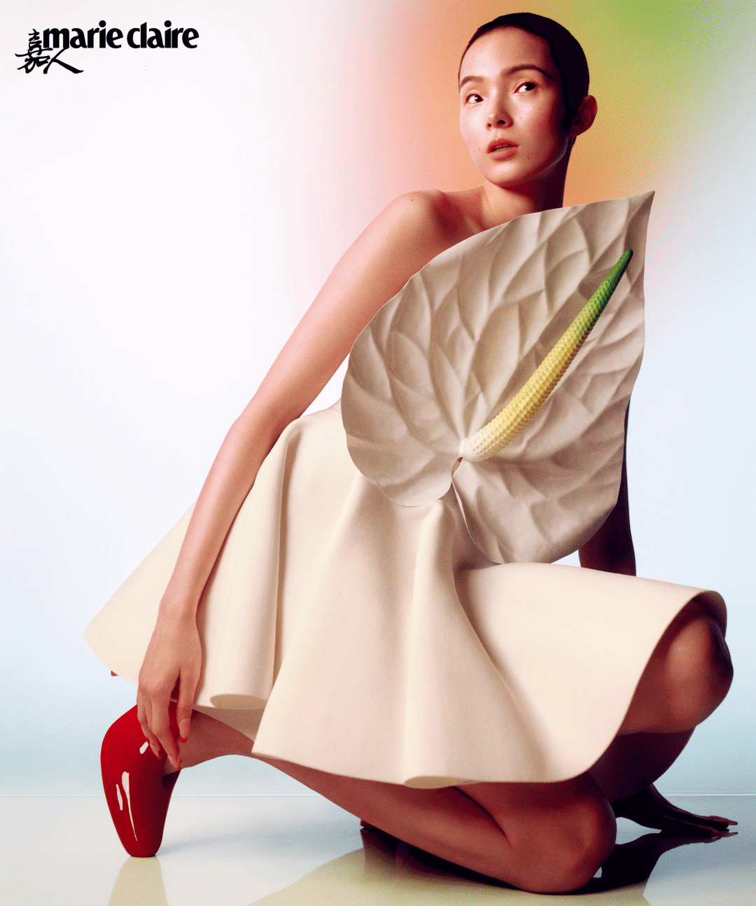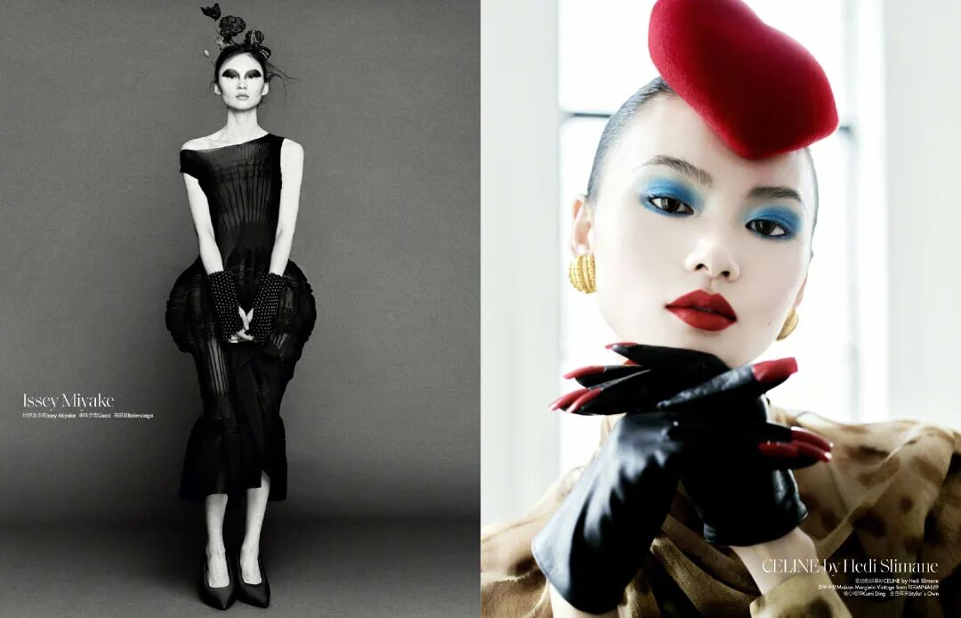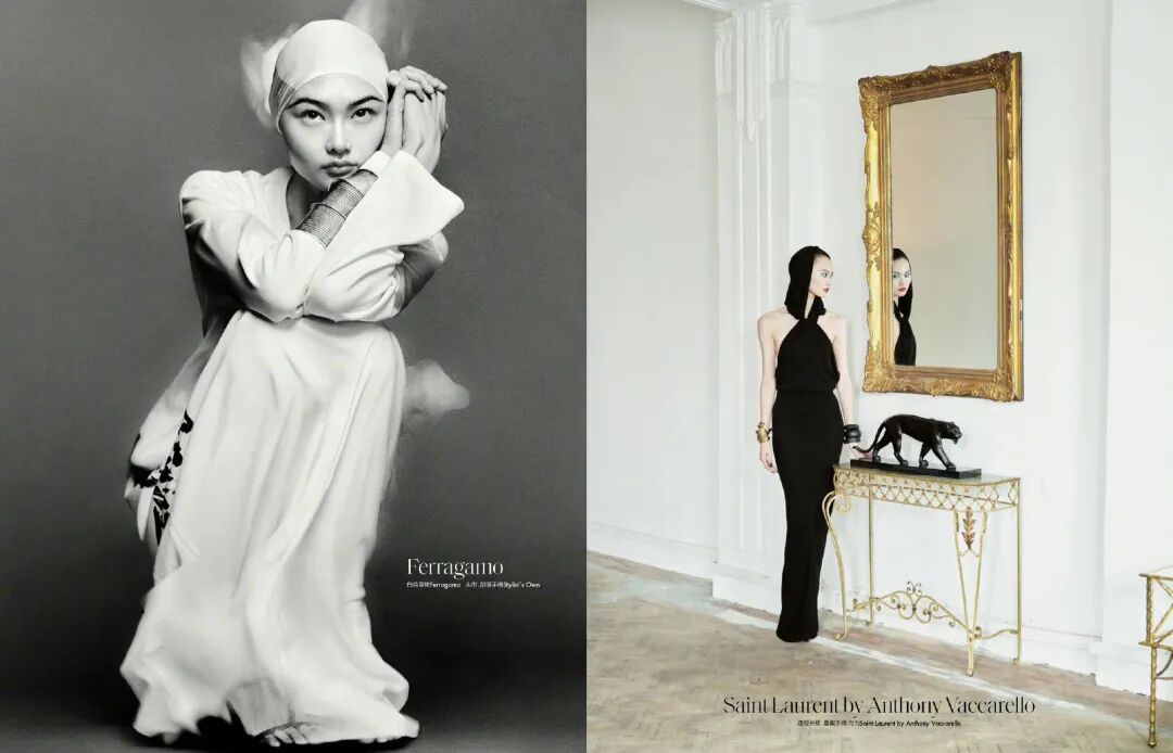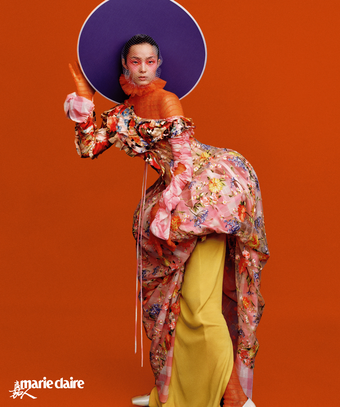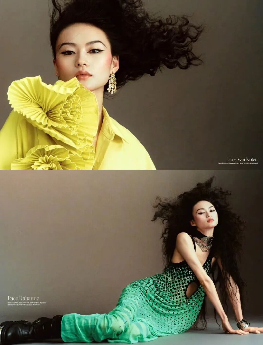 超模雎晓雯身着 LOEWE 红白掌花连衣裙登上《嘉人》三月开季刊双封面,不得不夸一下,嘉人的时装大片水平总是那么突出!