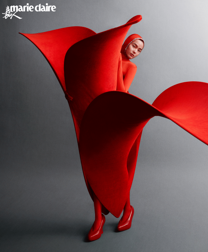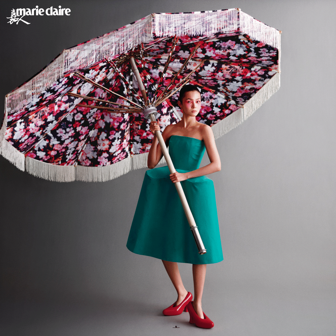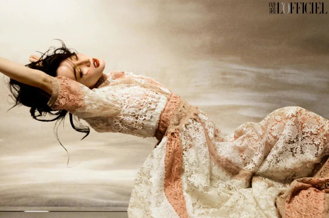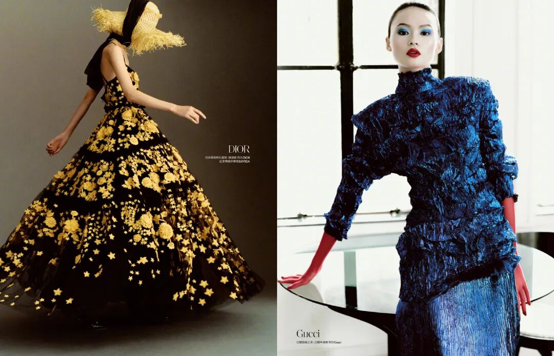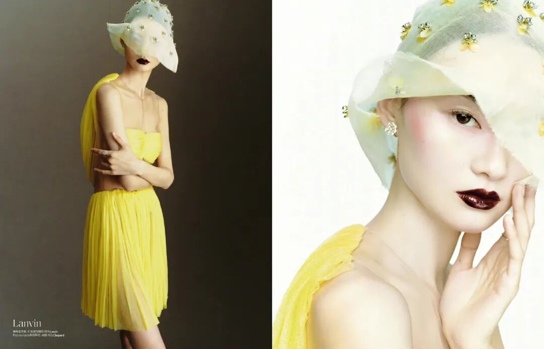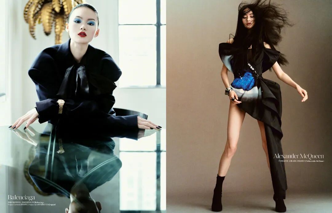 超模雎晓雯身着 LOEWE 红白掌花连衣裙登上《嘉人》三月开季刊双封面,不得不夸一下,嘉人的时装大片水平总是那么突出!