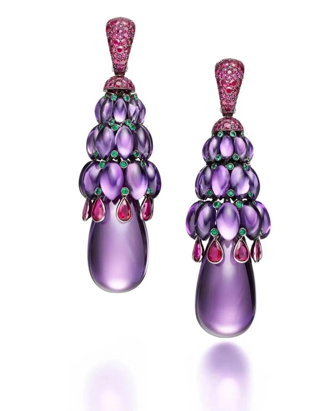 紫水晶不仅貌美,还非常争气,可以长得个头很大,而且随着它尺寸的增大,每克拉的价格上涨幅度也不算太大。喜欢大主石设计的时髦精们,紫水晶是个不错的选择哦~
