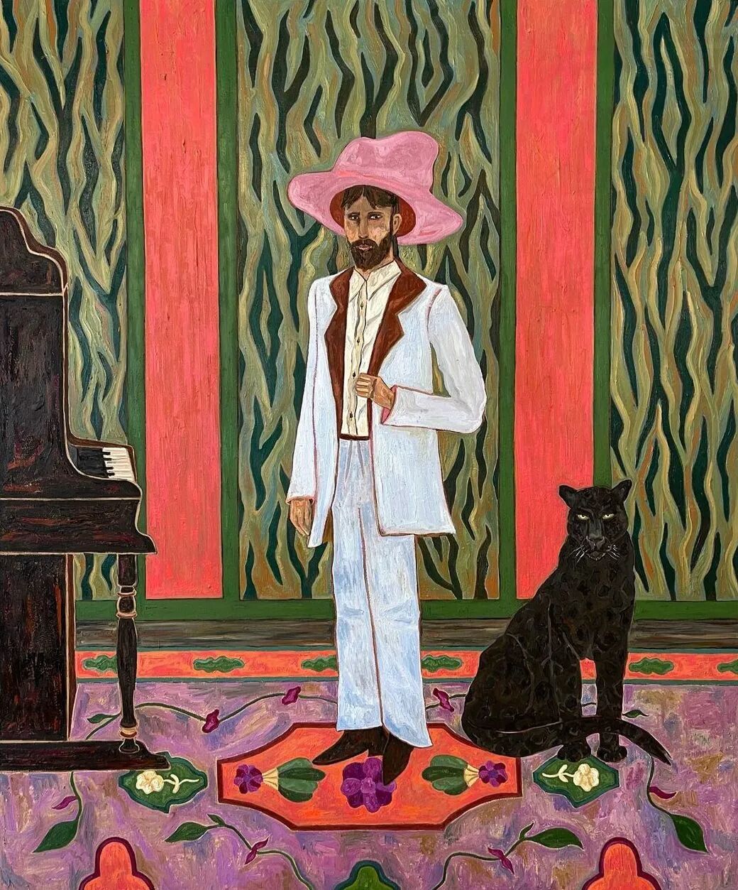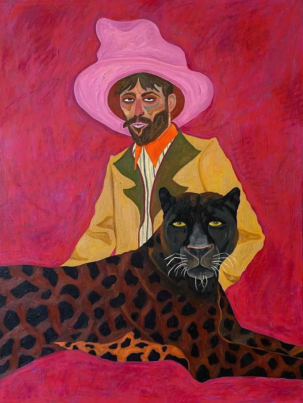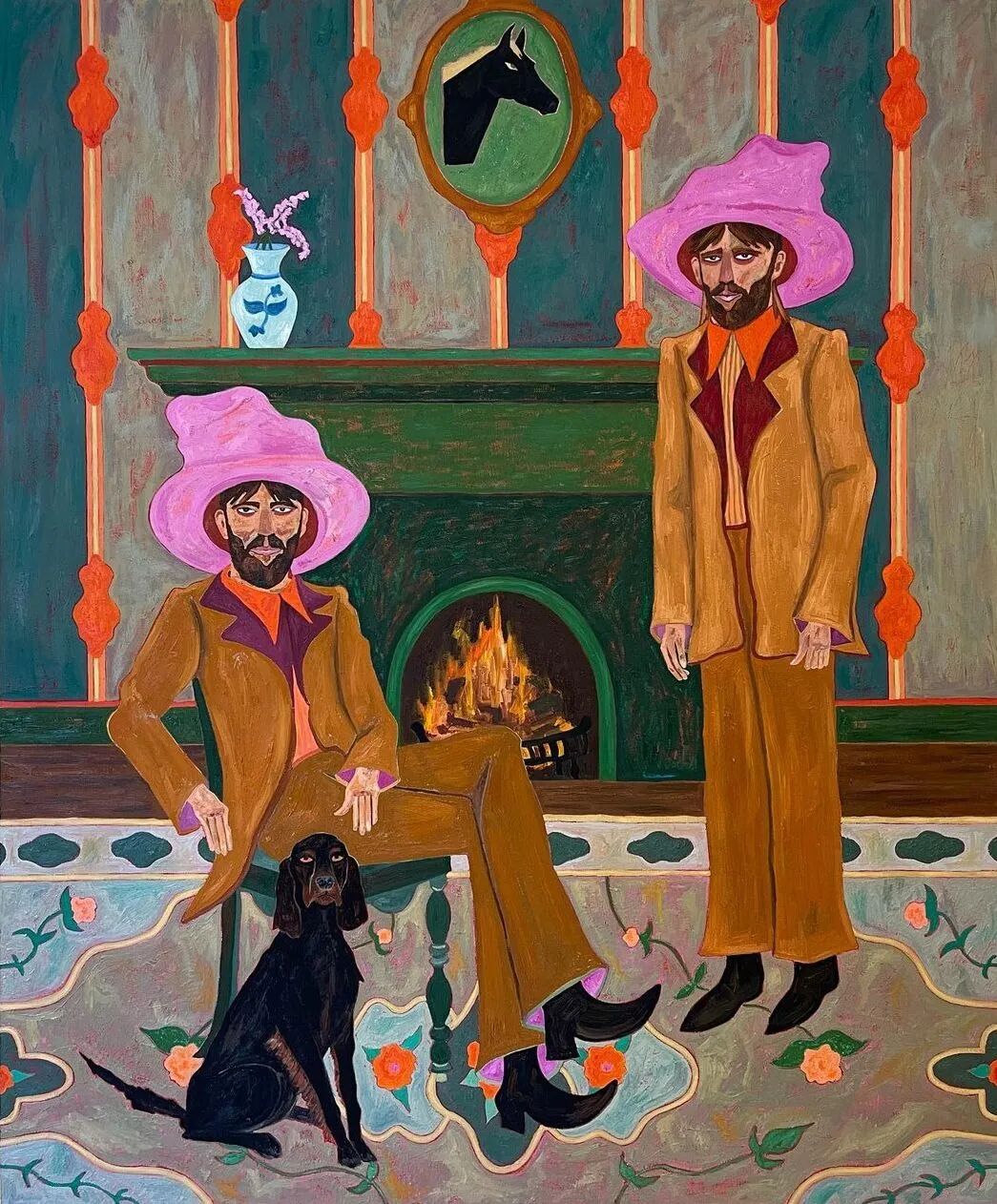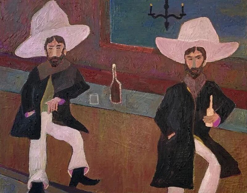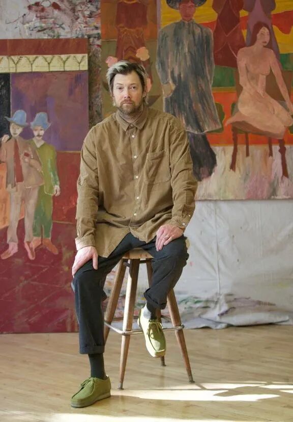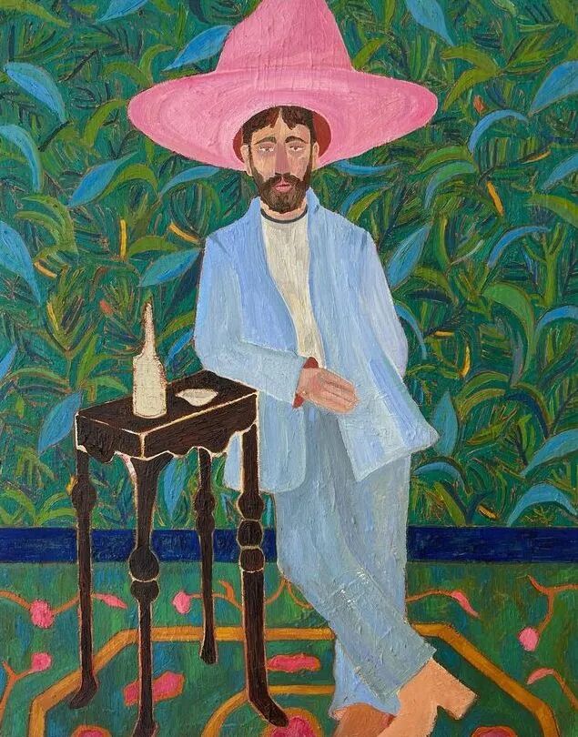 Ben Crase作品描绘充满乐观和幽默感的19世纪美国西部的人物和场景,画中的男性都戴着大得离谱的粉红色帽子。他试图用颜色、质地和不合时宜的构图选择能引起观众的情感反应,让人意识到西部不那么完美的过去。