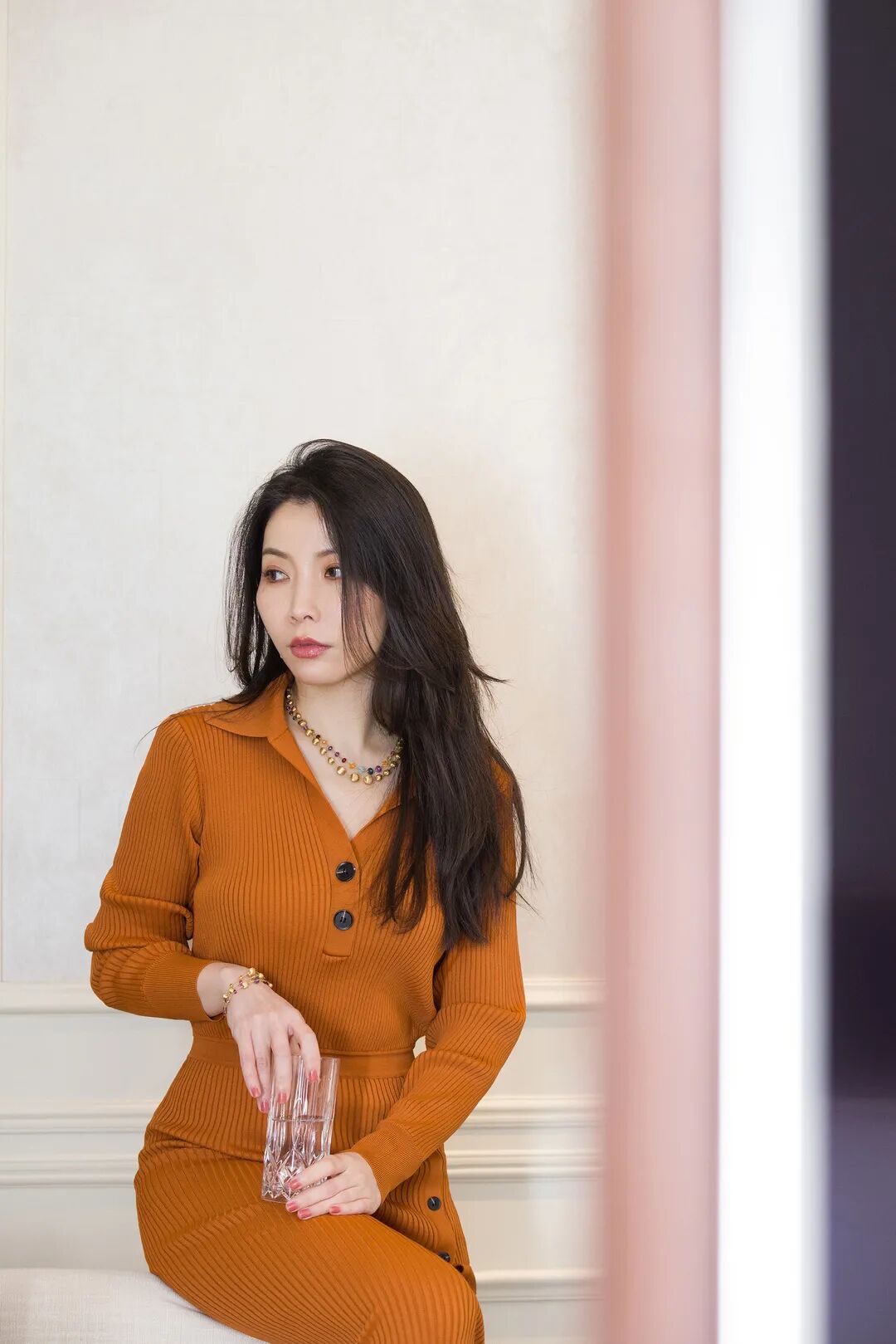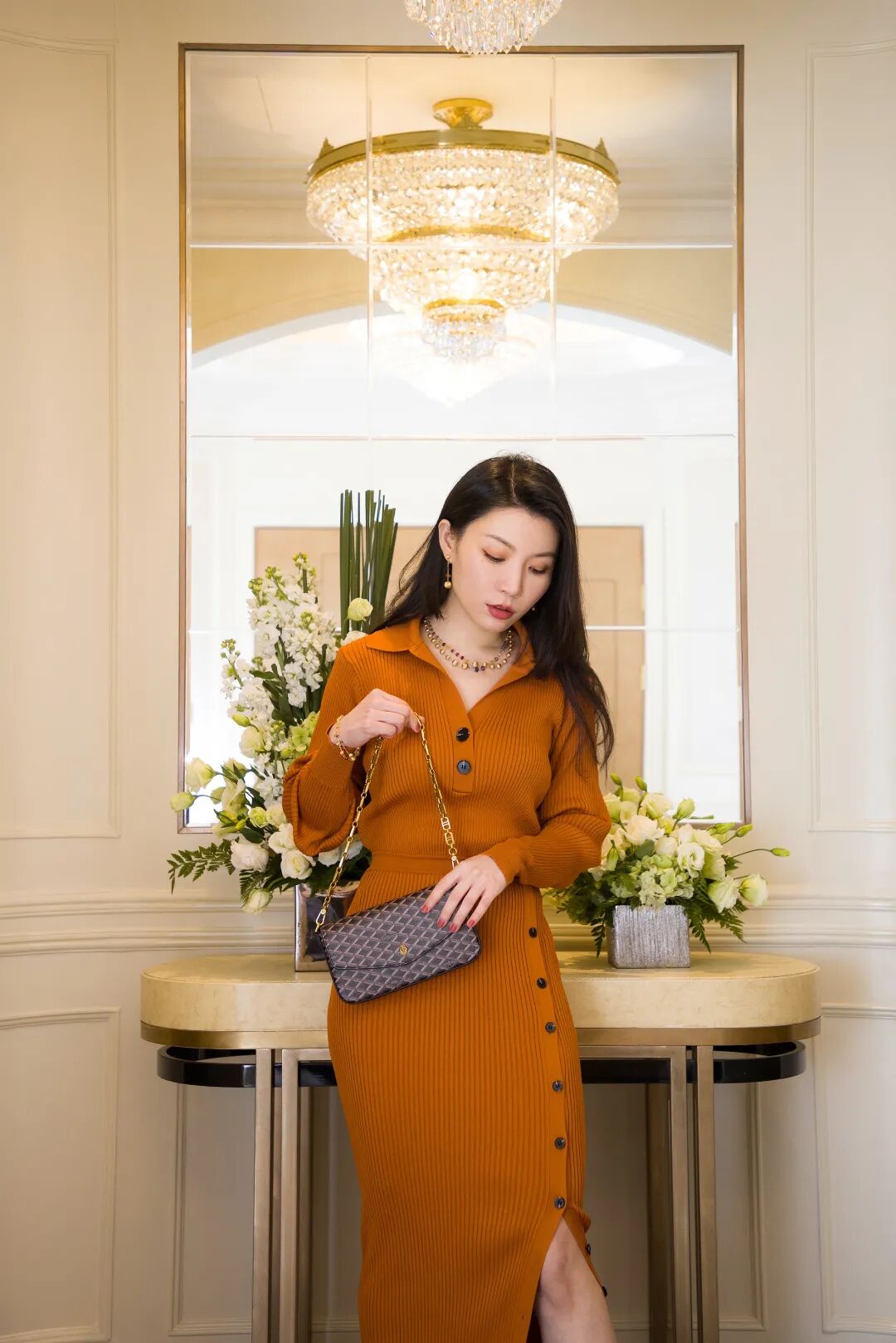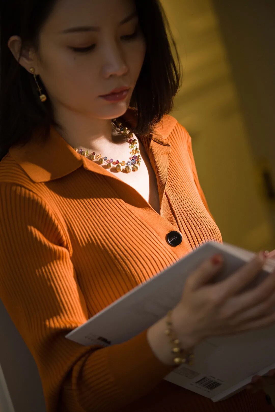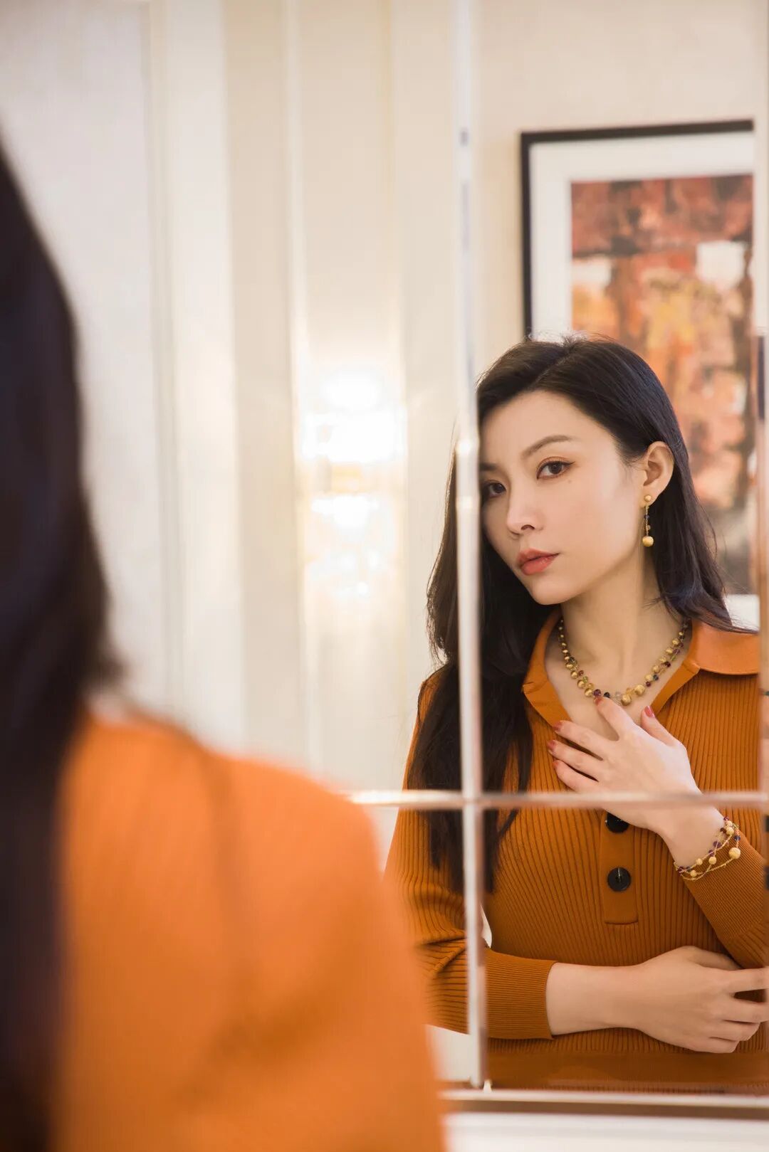 我选择了一条橘色长裙,没有繁复的设计,更多在意的是剪裁高级以及方便赴约,佩戴的是神秘且华丽的Africa系列,宝石串珠和黄金串珠的结合,层次丰富,细节处质感更加迷人。