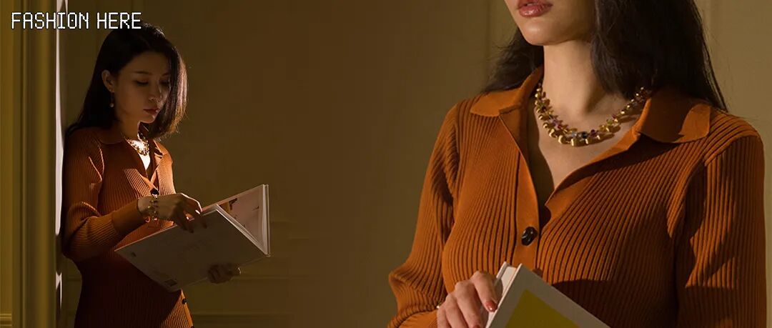 这个系列的项链长度叠戴起来更加复古摩登,金色的质感更加内敛含蓄。