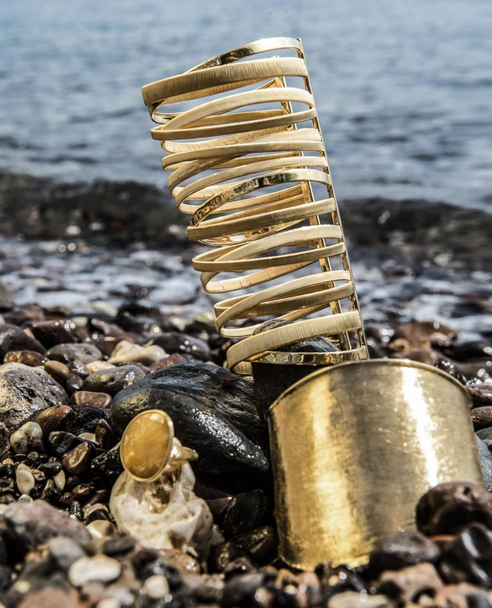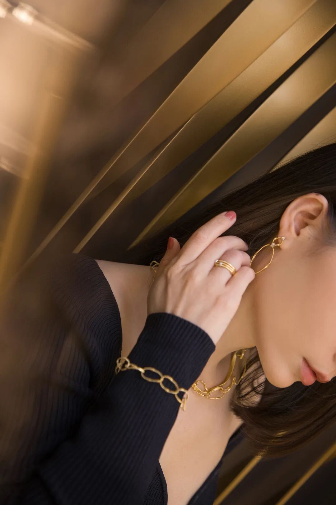 这些18K黄金线圈经过精心手工锤打和扭曲,相互交织,打造出感性而独特的现代珠宝,采用的是品牌秘技:The Coil 手织黄金弦线,依靠人手扭曲成回旋的样子,内里中间有金属幼芯,柔软且富有弹性,给人有种动感的错觉。