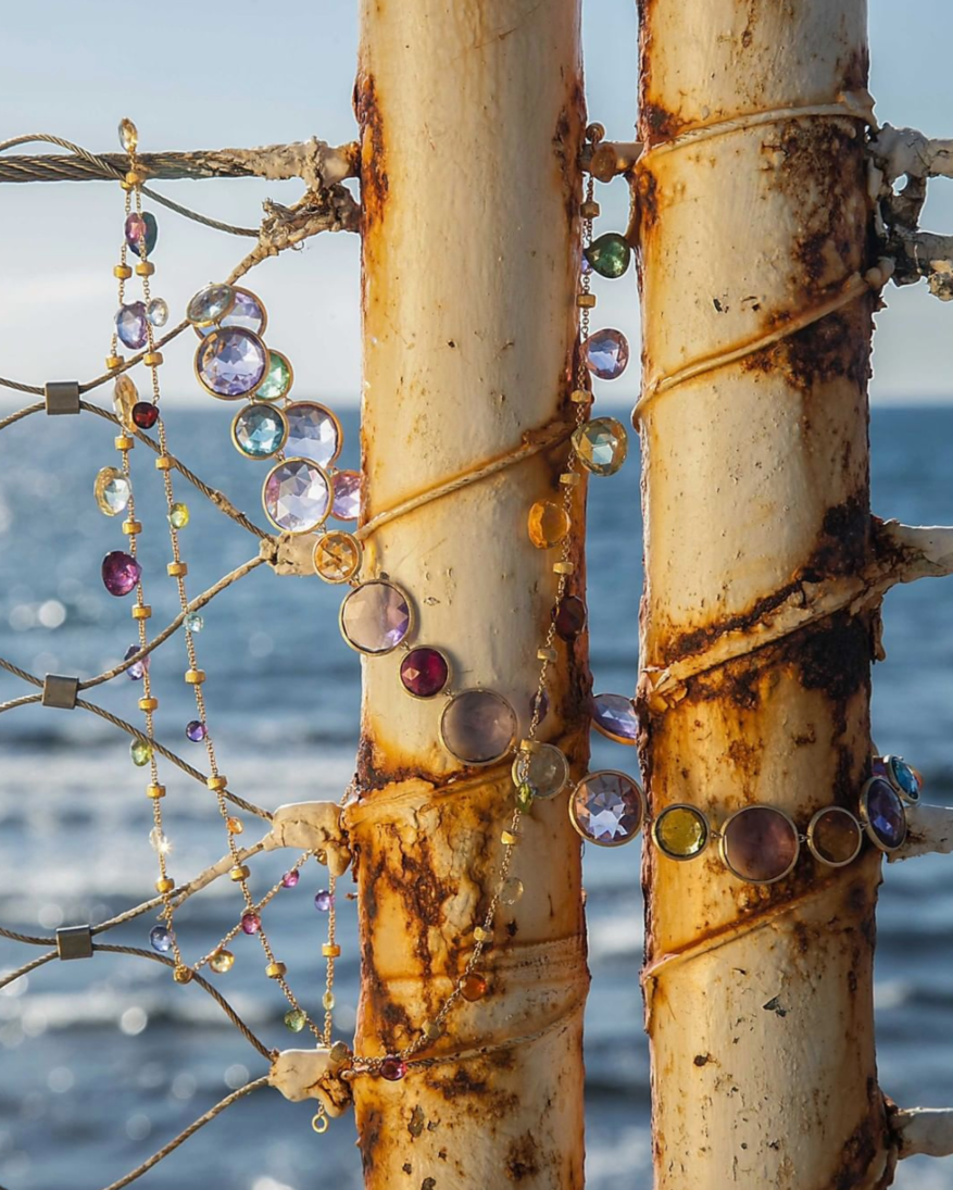 这个系列简单且纯粹,地中海的每一滴水都极为干净,这个系列的每一颗珠宝都极为剔透。绚烂多彩的宝石像流苏一样串在一起,不规则的大小次落排列,自然流露出自由、浪漫、梦幻的感觉。