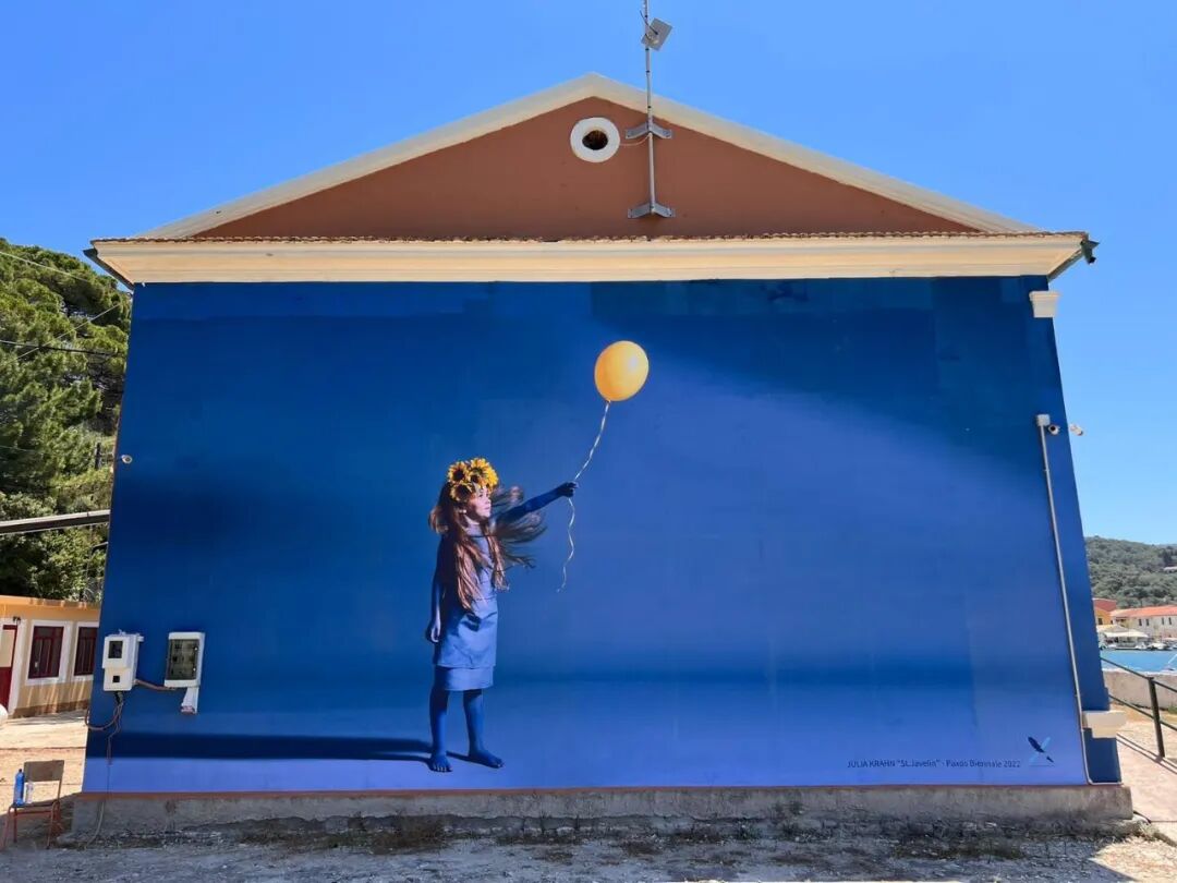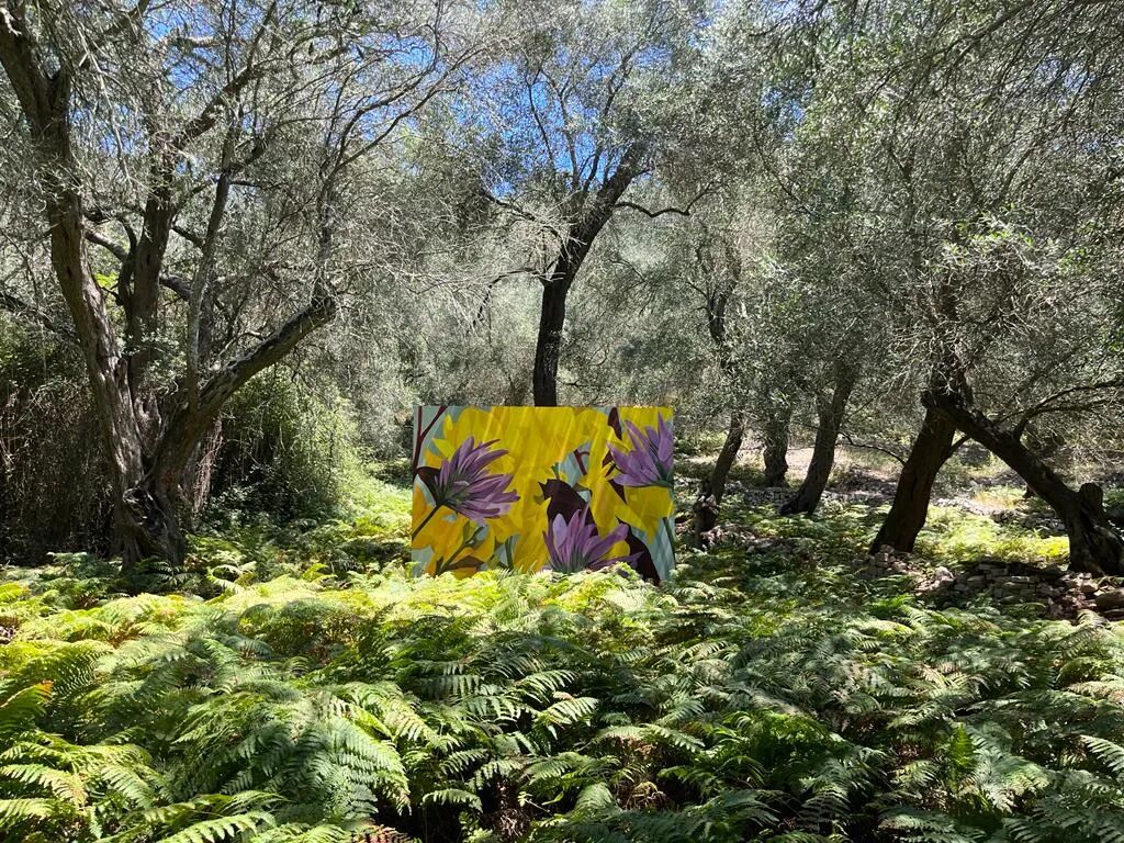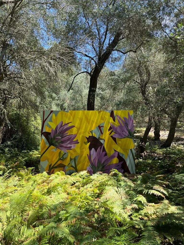 巴西壁画艺术家Thiago Mazza注重于对动植物的描绘,他的作品以高饱和度的颜色和动植物元素丰富著称,体现出他对大自然的热爱之情。当他在春末抵达帕克索斯岛时,他立即被岛上种类繁多的花卉所吸引。在完成收集花卉图案的工作之后,他在岛上到处游走,以期寻找一个可以安放他作品的最佳地点。