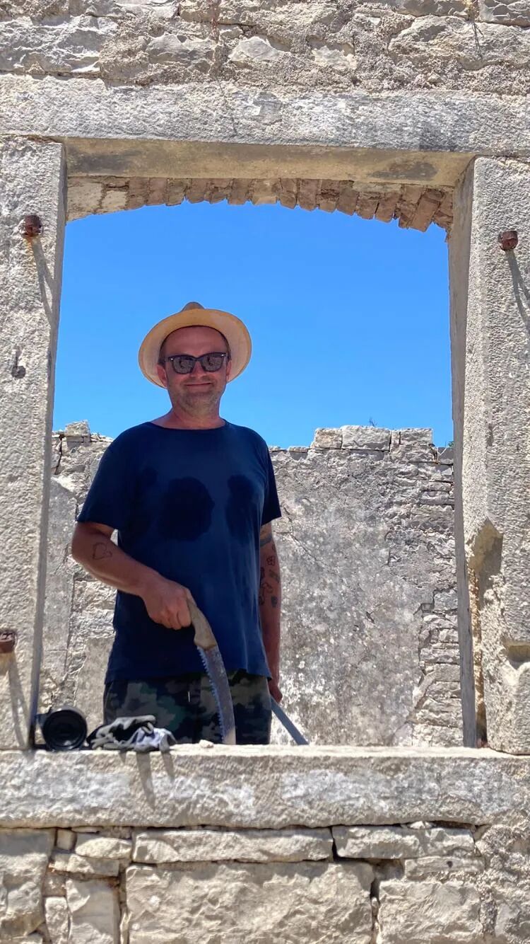 他在通往Avlaki海滩的小径上找到了完美的地点。在那里,他发现了众多的古老橄榄树,其树龄可达400年。他选择的地点因其周边茂密的灌木丛、橄榄树顶形成的巨大树冠以及阳光所产生的神奇阴影而产生了奇特的效果。