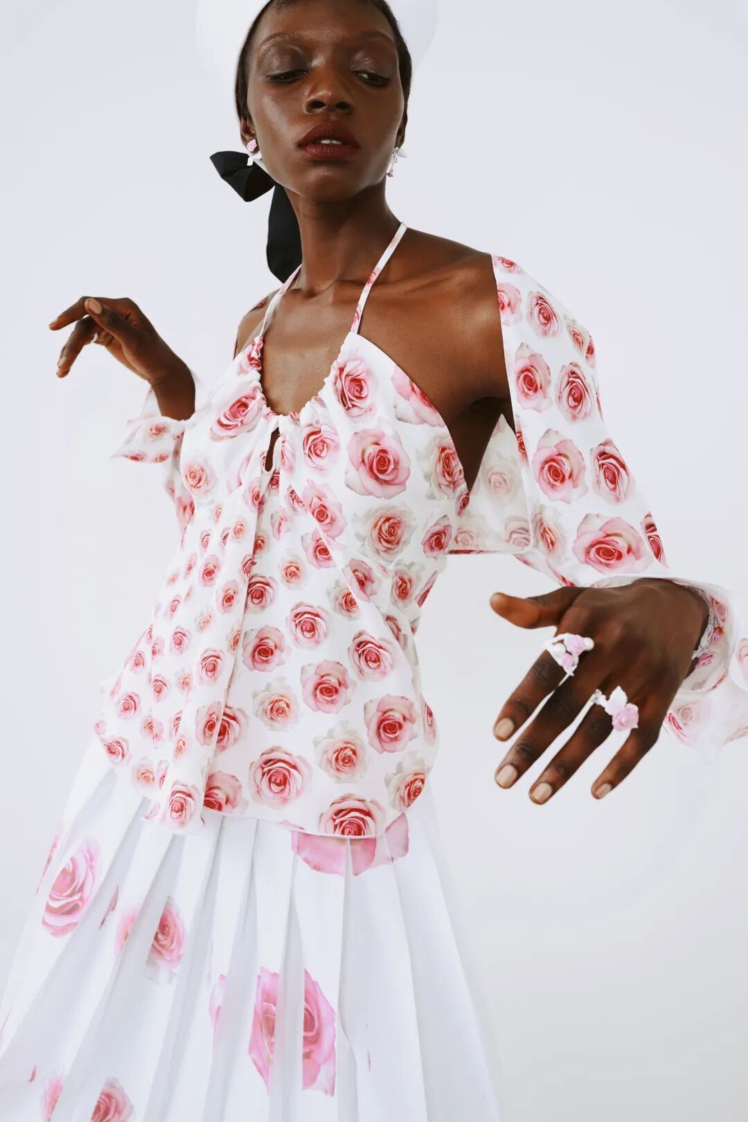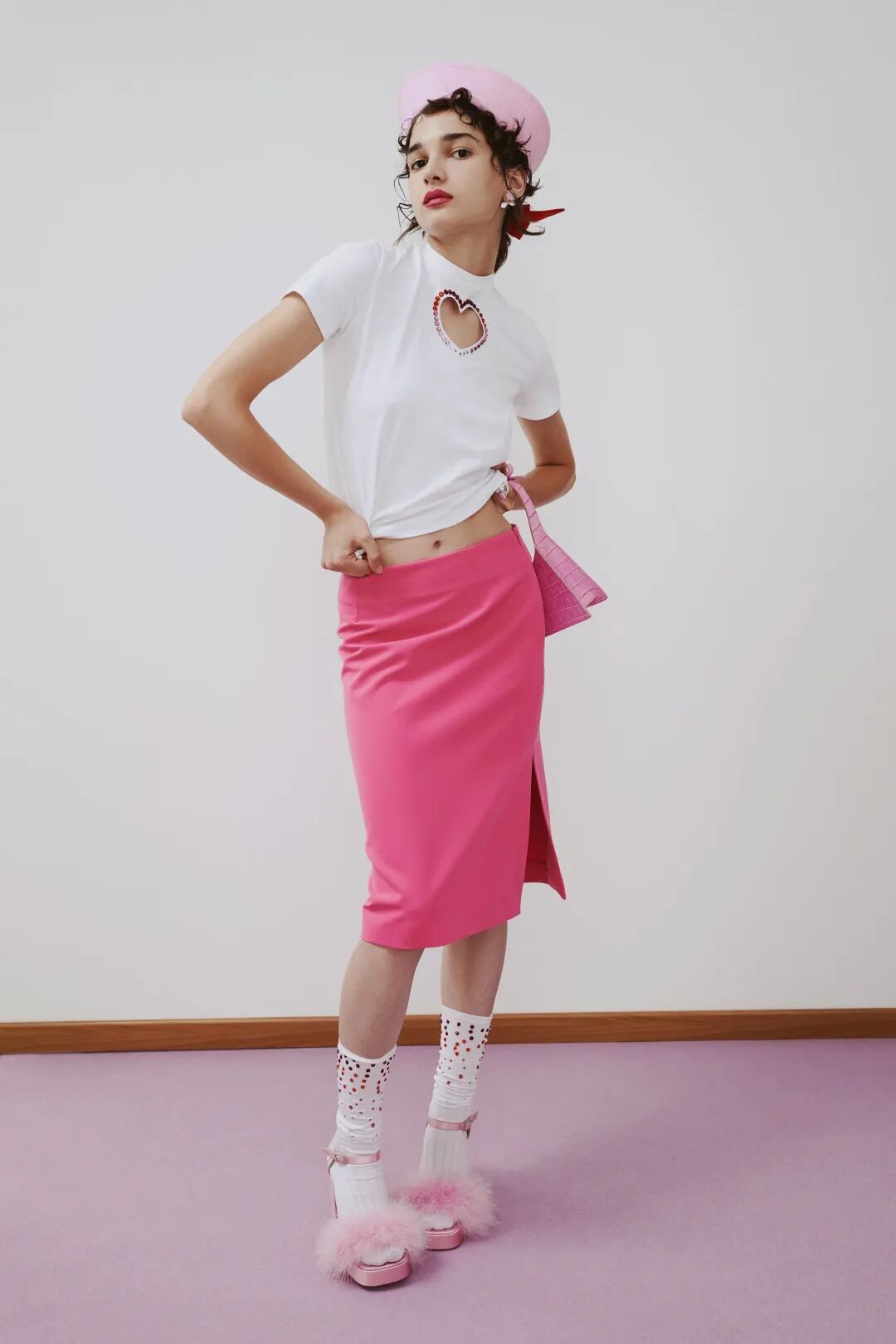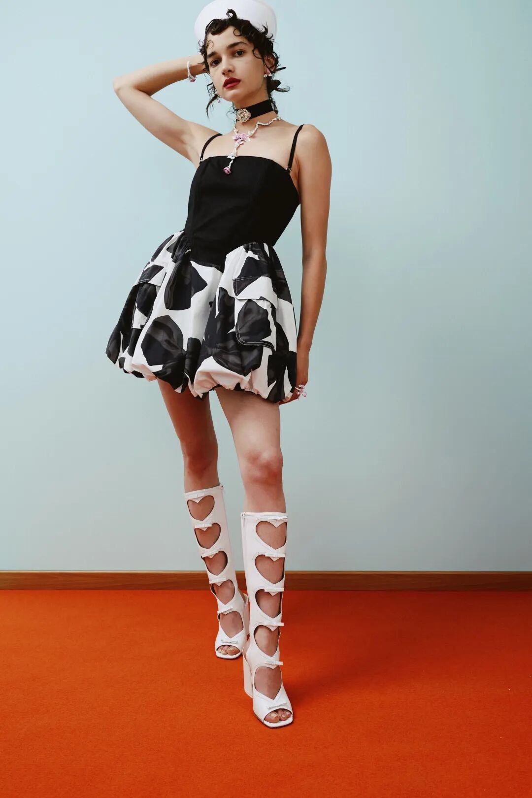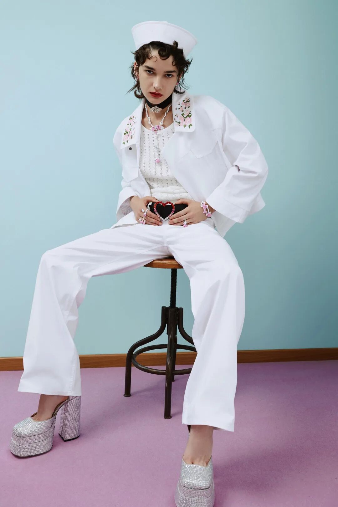 2023度假系列,可以看到Vivetta Ponti设计的满屏的爱心,心形的剪纸和玫瑰漩涡将人拉到一种愉悦的氛围之中,整个系列都洋溢着欢快的气息。