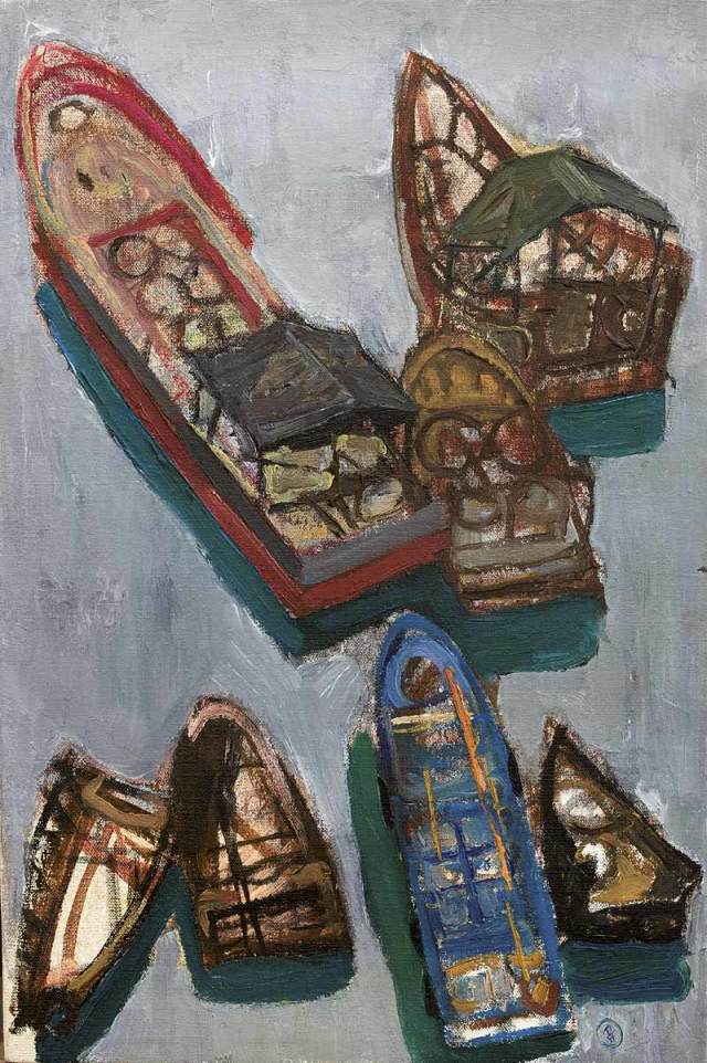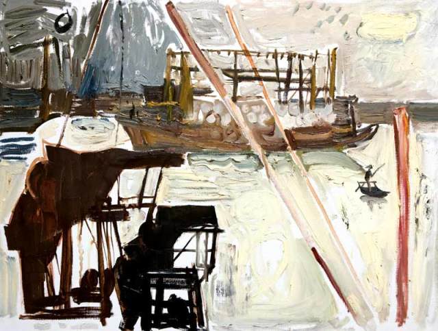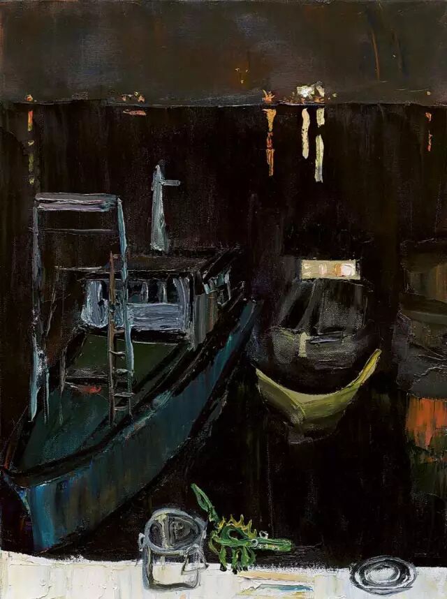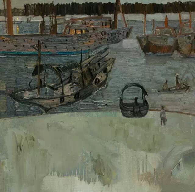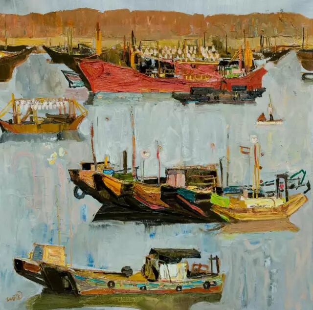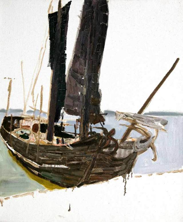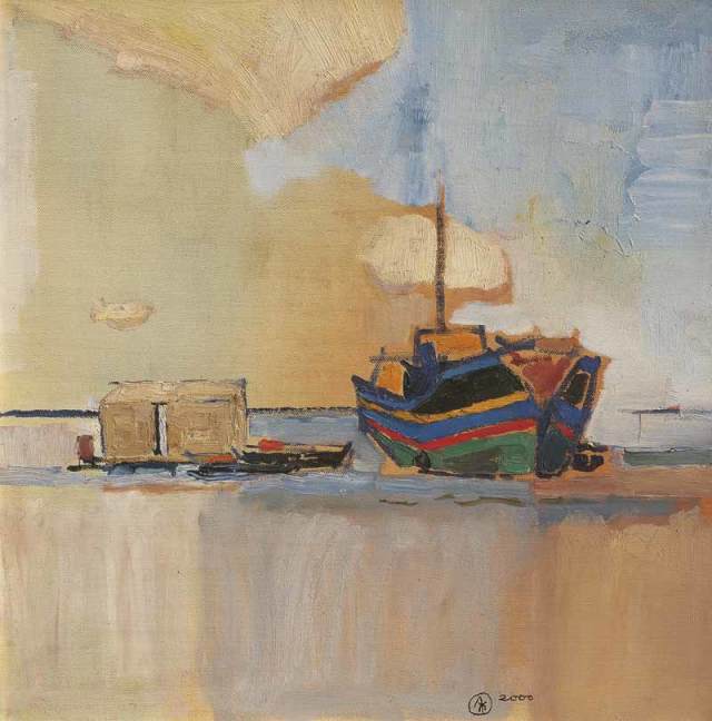 戴士和 小船摇过企沙码头 60×80 布面油画 2007
