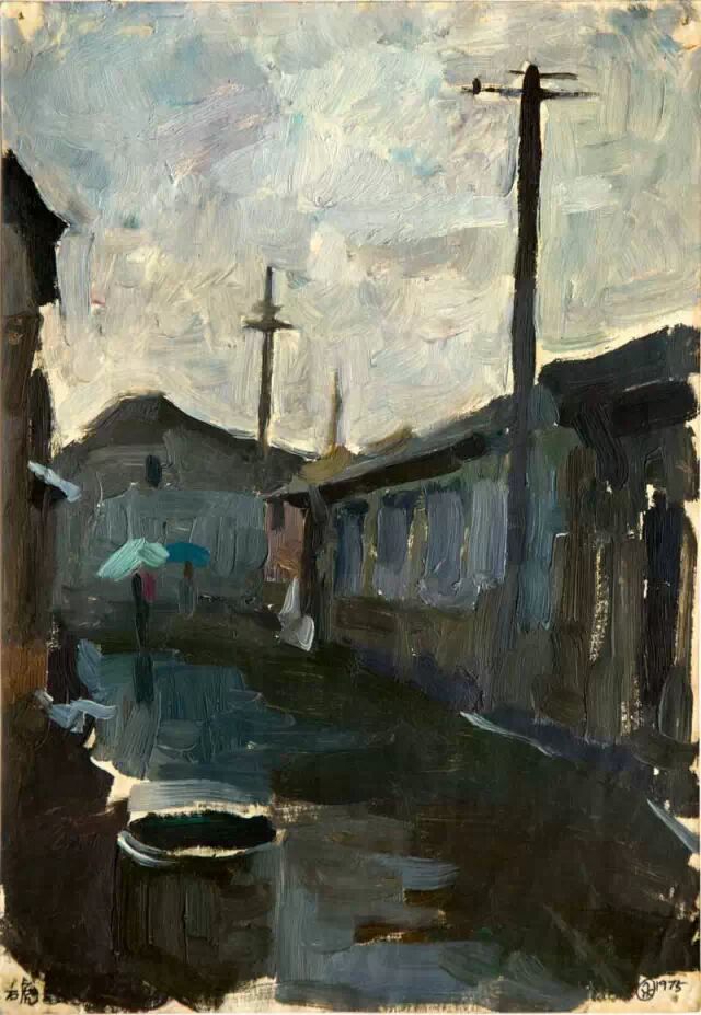 戴士和 石虎胡同北口 35×22 纸面油画 1975