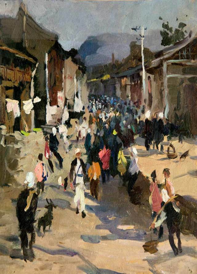 戴士和 集市 3122 纸面油画 1977