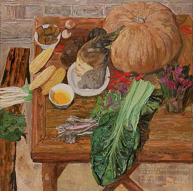 戴士和 诸葛小村里 80×80 布面油画