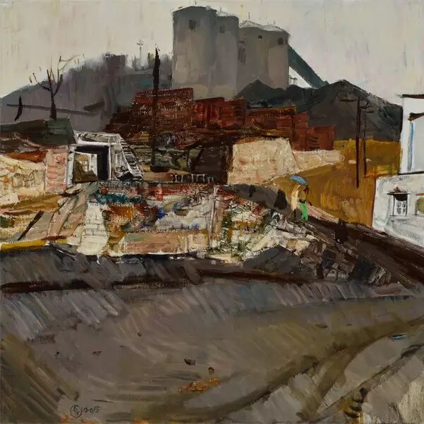 《石壕村村口》布面油画 80x80cm 2015年《河南三门峡旧厂》布面油画 65x100cm 2015年