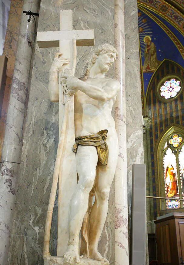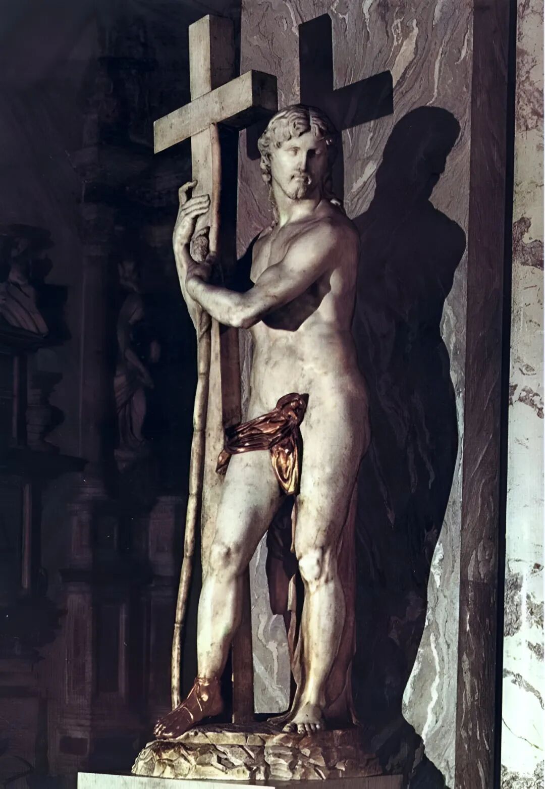 这件作品于1514年6月由罗马贵族梅泰洛·瓦里委托创作,他只规定裸体站立的人像手臂上有十字架,但将作品的创作空间完全留给了米开朗基罗。