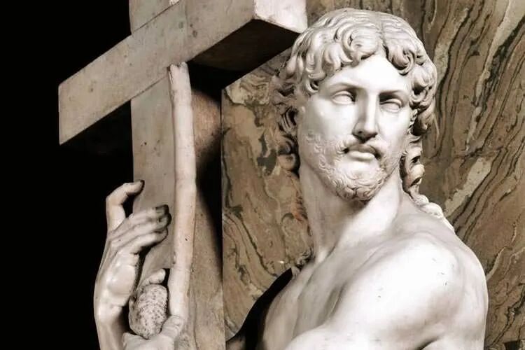 每天两分钟,赏雕塑,听艺术,大家好!今天给大家介绍由意大利文艺复兴时期的大师米开朗基罗于1519-1520年间创作的大理石雕像《带十字架的基督》。