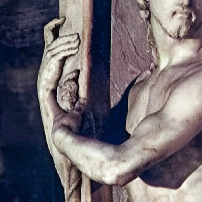 1519-1520年间,为了履行合同条款,米开朗基罗匆忙更换了一个新版本,他在佛罗伦萨进行了创作,后来搬到罗马,由他的徒弟费德里科·弗里齐最后完成了作品。