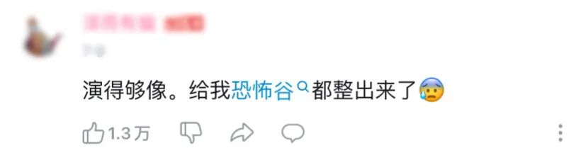 还有一条点赞过万的评论,直呼演得够像,给他恐怖谷都整出来了。