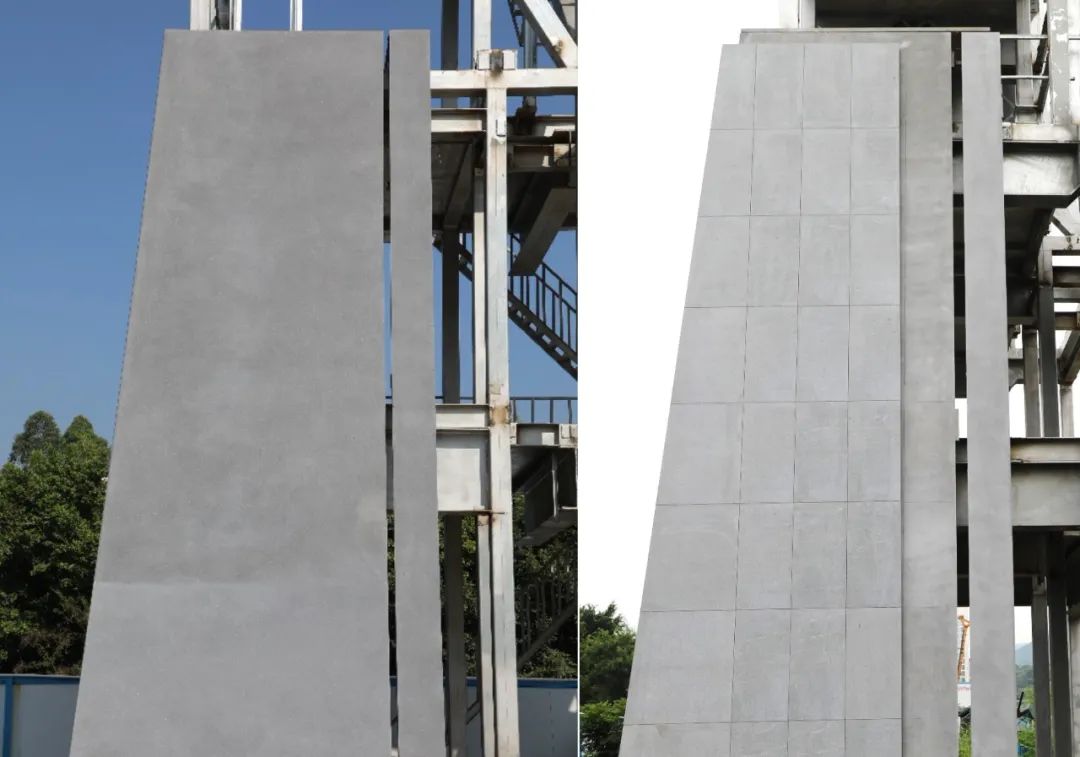 裙房材质对比图(左侧为UHPC,右侧为石材)△