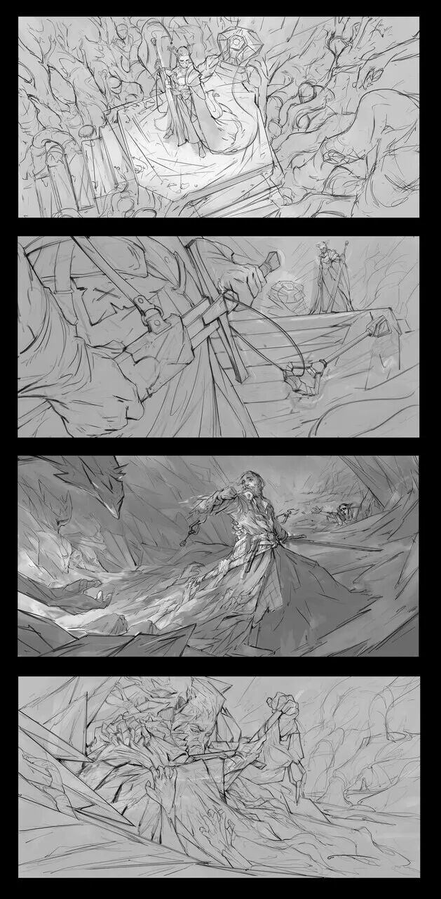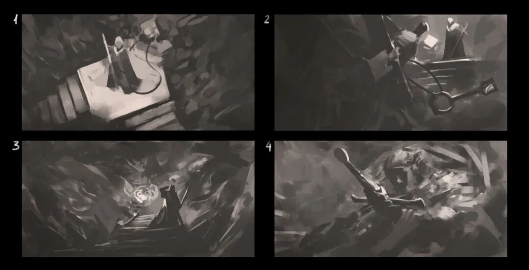 Taras的作品在构图方面很讲究,对于明暗关系的表现非常到位,画面张力十足。他在A站《灯箱博览会:神秘之盒》挑战赛上拿到了关键帧组的冠军,这组作品Taras为最注重的就是故事感以及情绪的表达。