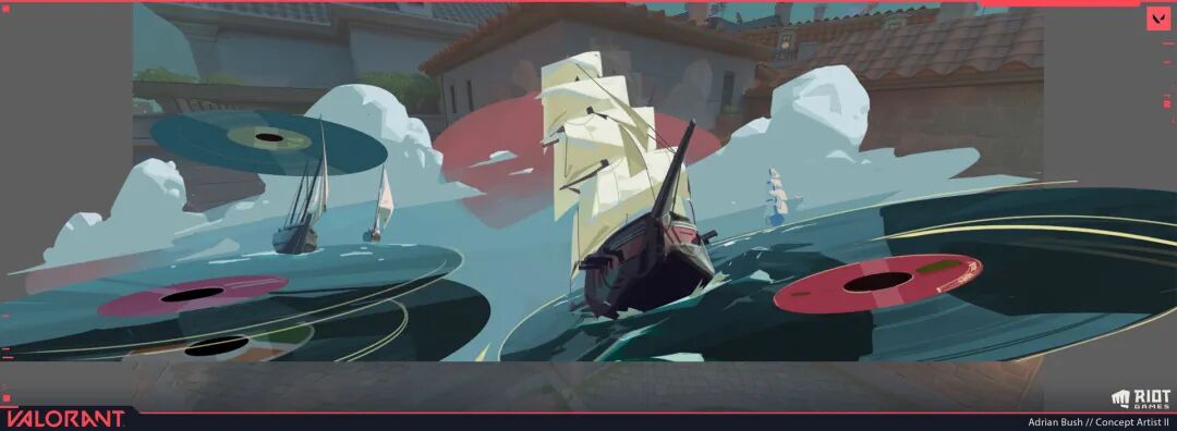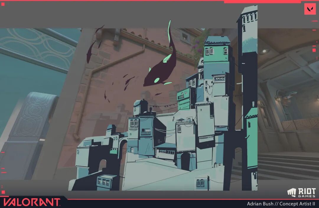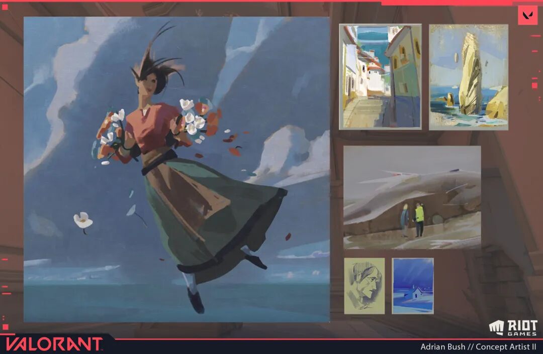 2021年Adrian Bush刚从AACD毕业就进入了拳头公司,负责游戏《Valorant》的概念、视觉设计。但实际上他从2018年开始就接包做环境、道具等概念设计,积累了一定行业经验。
