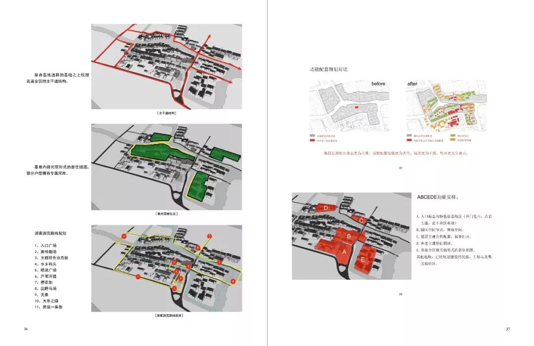 书中案例的编排方式是从项目的总体规划设计入手,逐层递进,对项目进行系统性阐述,大致可分为以下几个层级:项目总体规划 → 基本框架分析 → 分区展示 → 主要特色建筑解读分析 → 其他实景效果展示