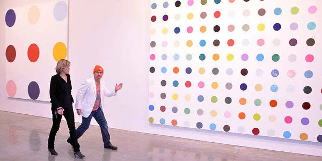 他的创作透露出强烈时代与地域特色,涵盖媒介极其广泛,创造出的个人视觉标签也十分丰富。除了福尔马林系列作品,布面作品也影响广泛,还表现出明显摇滚与波普气质。正如他所言:“成为名牌是人生的重要使命之一,这就是我们生活的世界。”