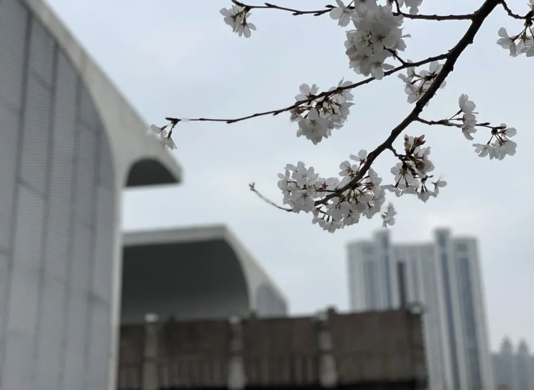 在疫情之际,我们难以亲临东京国立新美术馆,体验不同时空中交错的樱花。但季节变幻从未停止脚步,樱花之美不应被浪费。在Harmony Art所处的徐汇滨江,一片粉白梦境正在盛开。