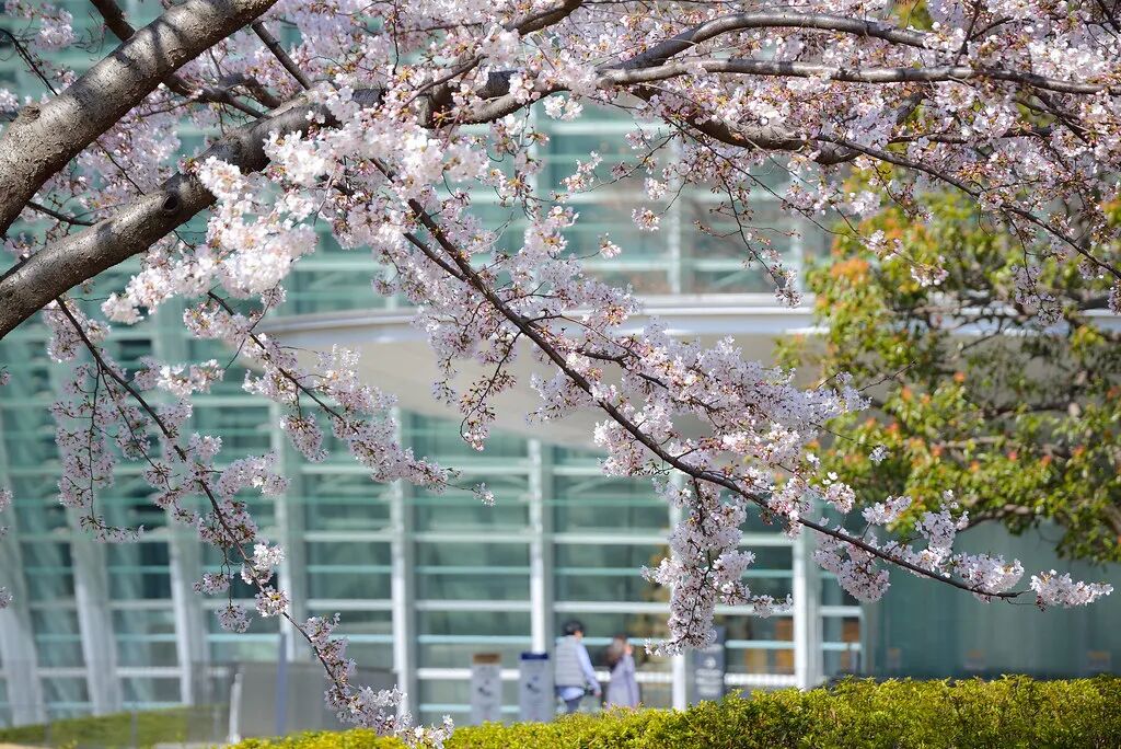 国立新美术馆是日本第五座国立美术馆,也是日本占地最大的艺术机构之一。空间由著名设计师黑川纪章操刀,“森林中的美术馆”体现了他的“新共生理念”。新美术馆周围被樱花树包围,与场馆内布面上的樱花交相辉映。