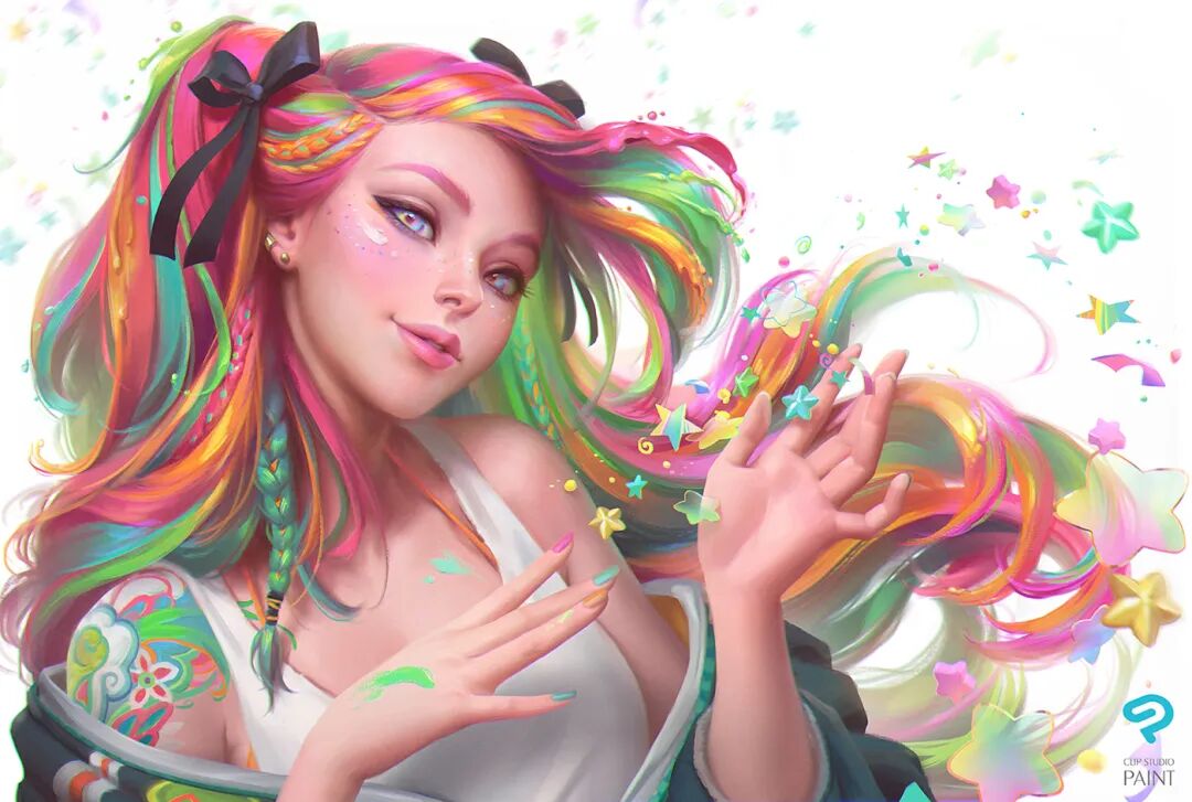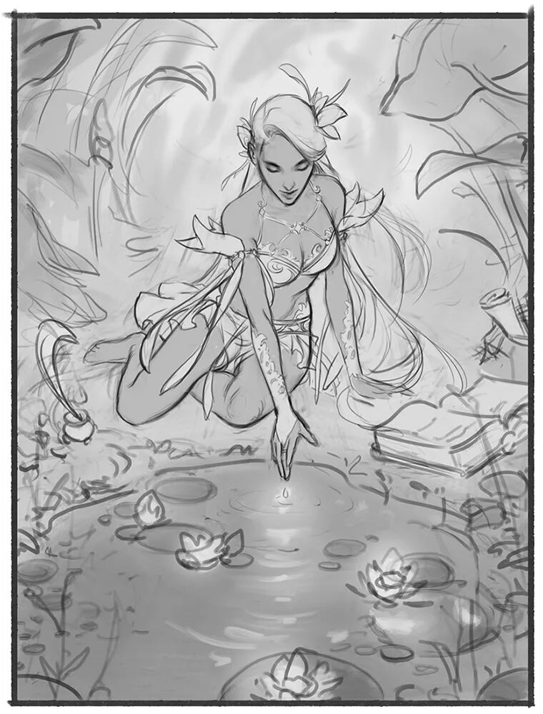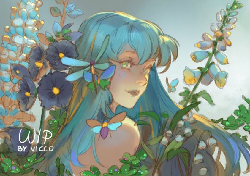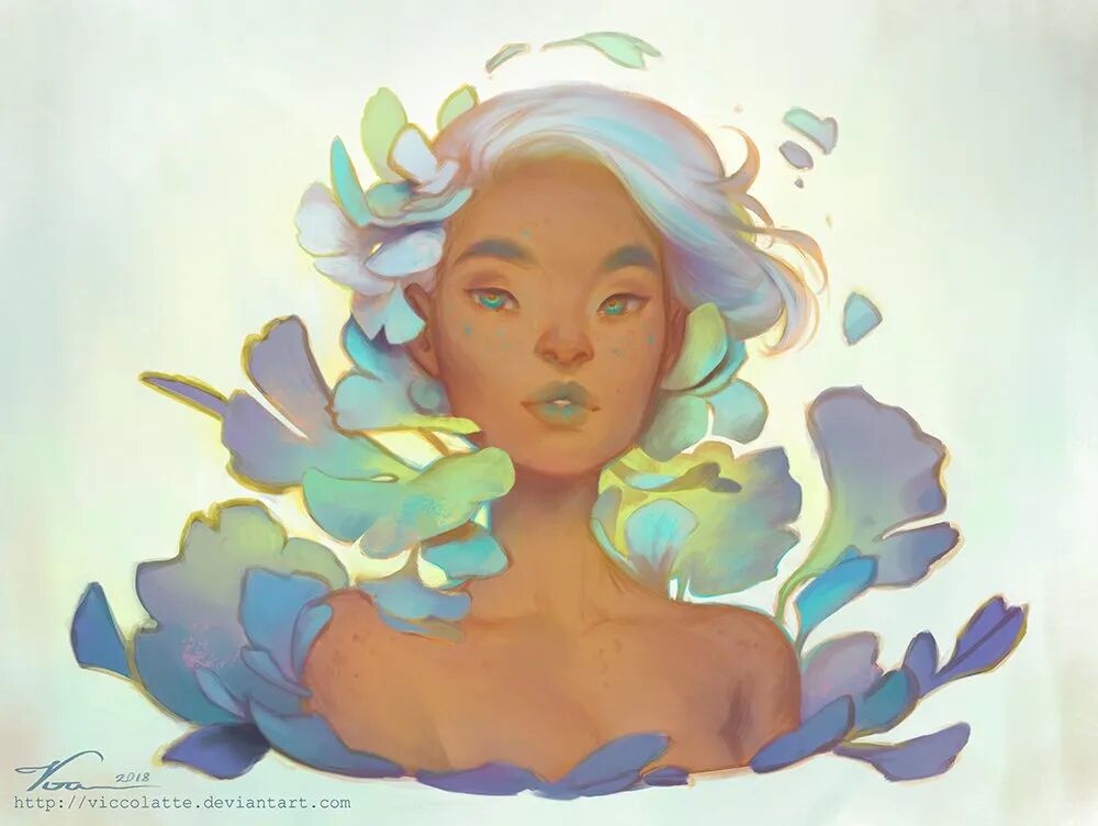 Viktoria Gavrilenko的作品拥有非常漂亮的色彩,画面干净通透,光影自然细腻;而且她很喜欢在作品中添加植物元素,也很擅长创作女性角色,她笔下的女性极具美感,或妩媚或可爱,神态刻画相当生动。