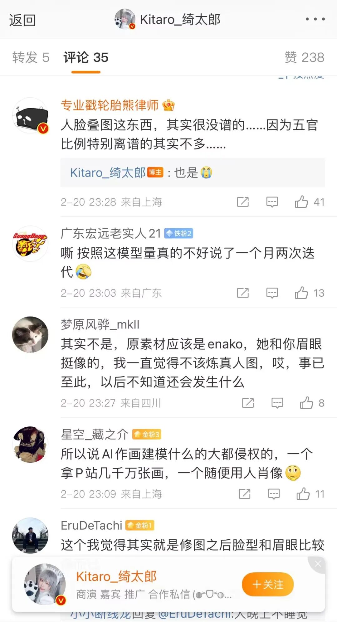这个微博博主也进行了互动,不过人的五官都比较相似,所以也有可能是错觉,但是在LoRA下,制作这样的换脸图片变得更简单了。