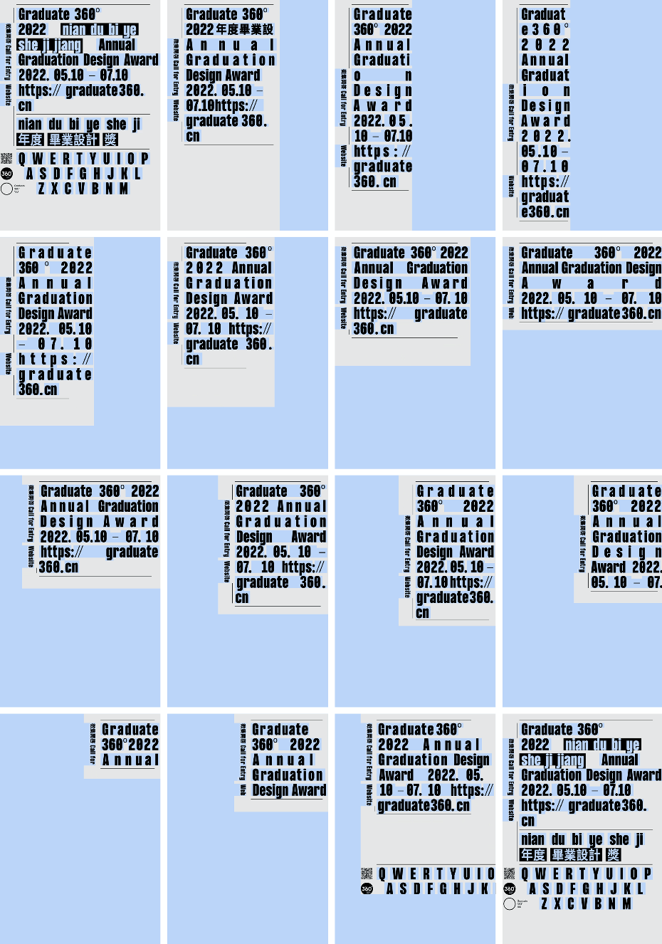 所以我并没有把它和毕业季相关联,在我看来它是一个更加纯粹的专业比赛。今年环境让我们无法再用热闹、热情和乐观的情绪去应对当下和未来的变化,冷静和理性可能在将来的一段时间内都是我们需要的。因此不管在字体、排版、颜色我都希望可以体现出冷静理性的气质。