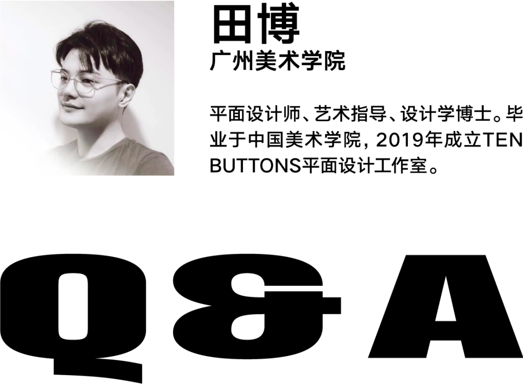 田博:这是个敏感的话题,因为我还是一个年轻的老师,资历尚浅。教师只是我身份之一,我的主要身份还是一个设计师,所以我来回答这个问题还是有些片面。在学校的时候,我会表达出希望教育可以区别市场,以培养构建视觉程序和逻辑的方向为目的的教育诉求。但在工作室面对设计师时,又感叹设计基础教育的缺失。这两个方向很多时候像两条平行线,没有交集。我很困惑,设计教育到底是面向什么,能为学生带来什么。