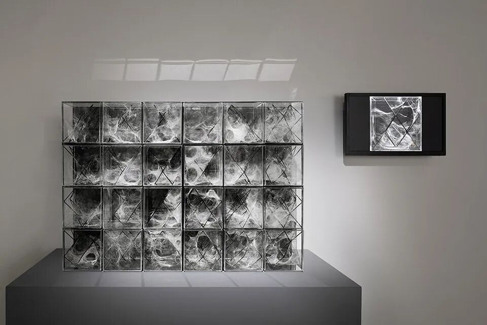 这项作品分为两部分,其一是由蓝藻细菌群落构成的“H.O.R.T.U.S. XL Astaxanthin.g”,其二是基于亚洲狼蛛的生活习性而构建的“XenoDerma”。艺术家在研究内共生生物模型时开发出了不同的基础空间结构,能够对它们的非人类行为形成干预。