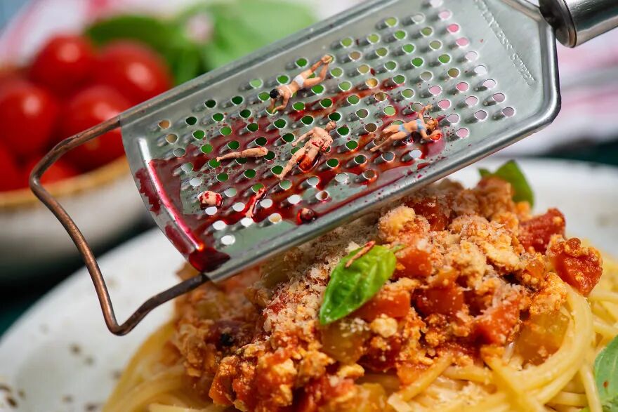 多年来美食摄影师Peter Csakvari,一只从事一个名为“小荒地”的项目,他将整微型人物放置在日常物品旁边,以创造微观世界的错觉。