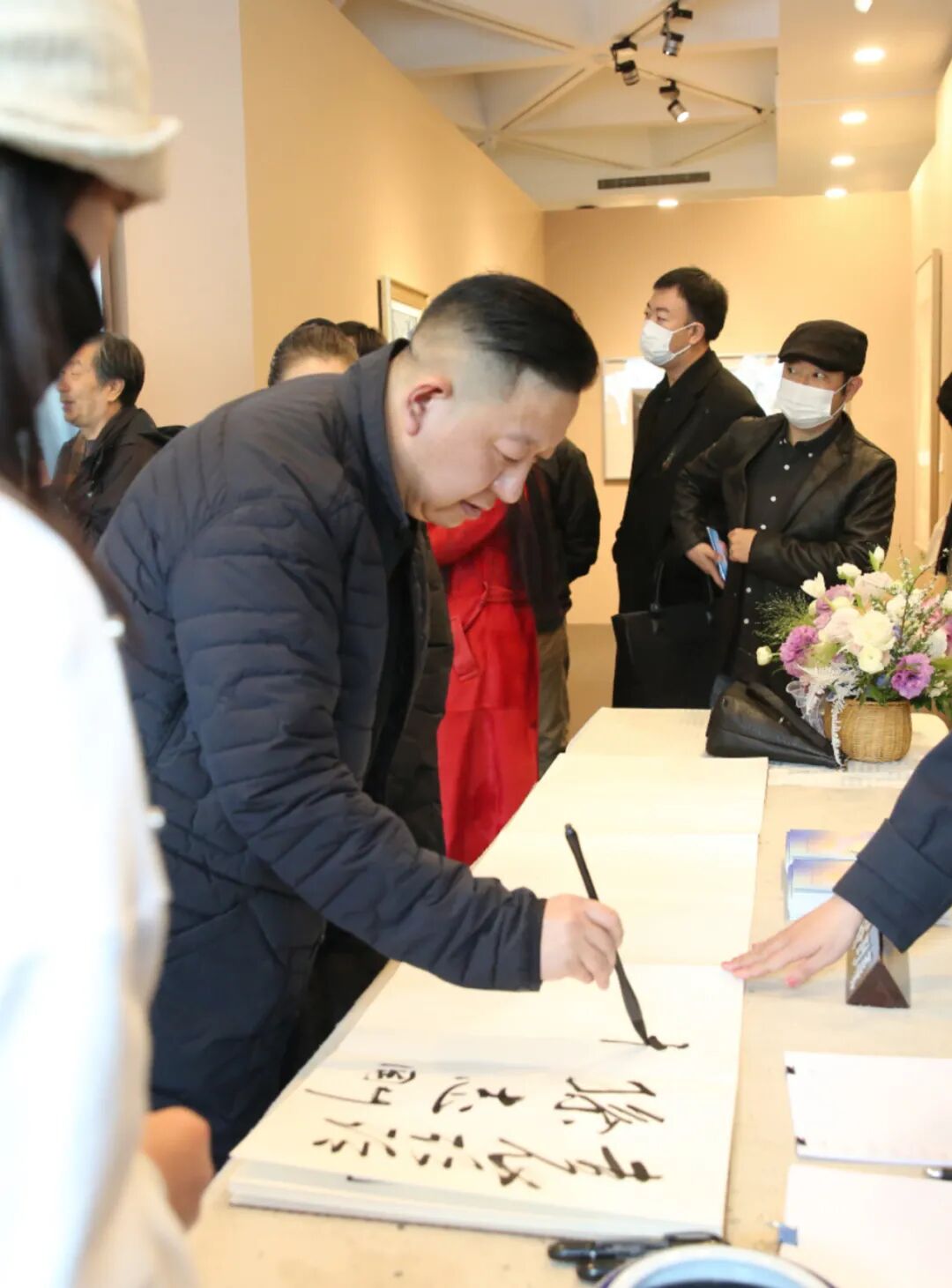 活动虽然是在一个寒冬的周末,并且防疫形势依然严峻,但是现场也嘉宾云集,场面火爆,让面积不大的美术馆有熙熙攘攘的感觉。