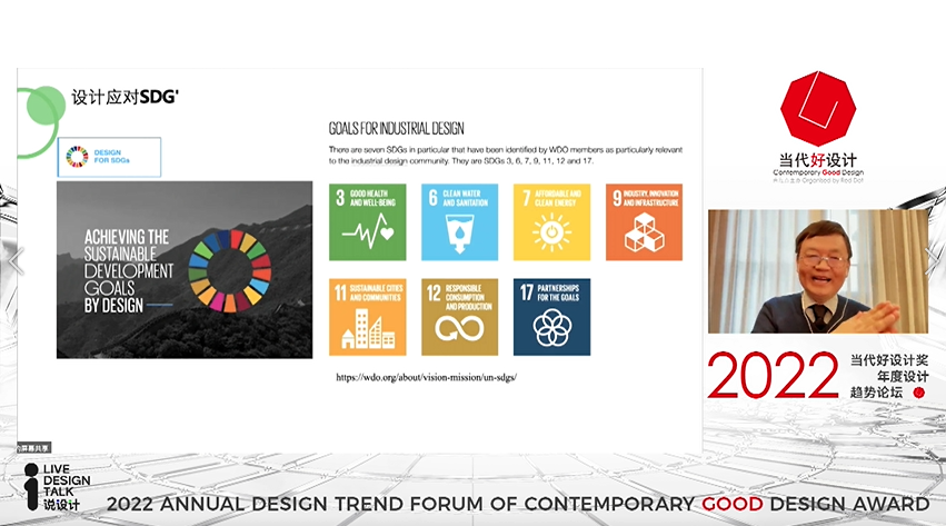 在2022当代好设计奖年度设计趋势论坛上,蔡军教授发布了当代好设计奖年度设计趋势分析,结合近年国际设计大奖趋势进行分析,得出精致科技、人本生活、呵护生命、生态永续的设计趋势观点。